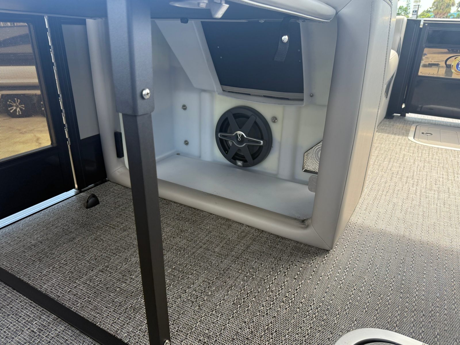 Powering this exceptional pontoon is a single Mercury (D) 300L Verado V8 engine, delivering a robust 300 horsepower for exhilarating acceleration and impressive cruising speeds. The Mercury Digital DTS Pre-Rig for VERADO engines with Vessel Link ensures seamless integration and precise control, while hydraulic and power assist steering make handling effortless, even in challenging conditions. With digital gauges providing real-time performance data, you’ll always be in command, whether you’re gliding across calm waters or navigating busy waterways. The rig engine features a stainless steel prop, optimizing efficiency and durability for long-lasting enjoyment.