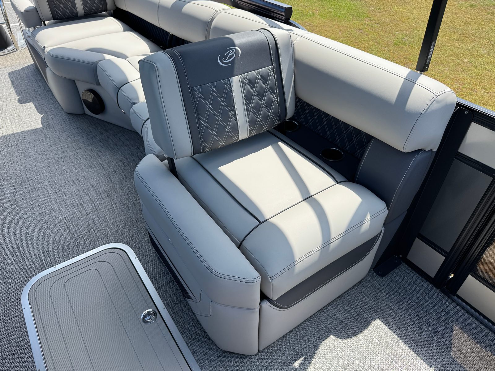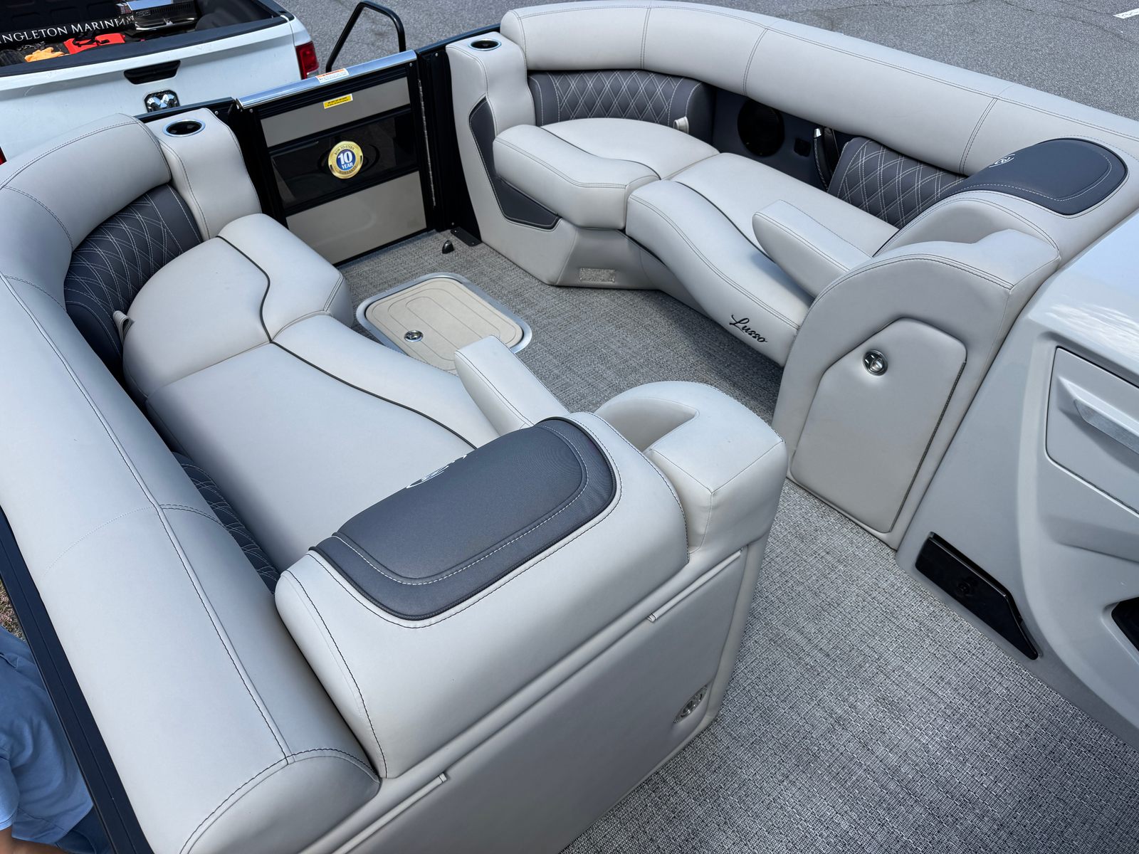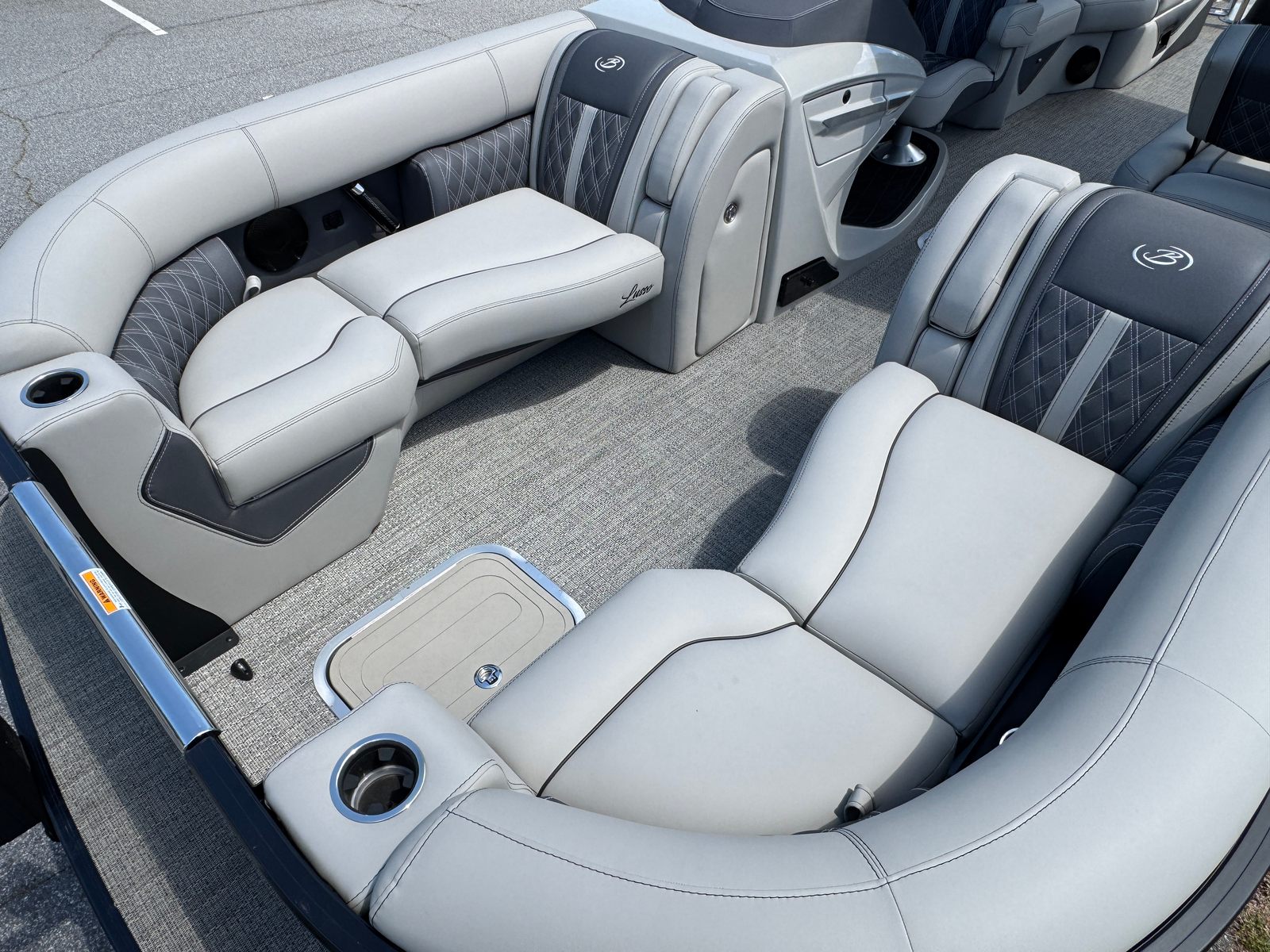 The 2024 Barletta Lusso L25M pontoon boat is designed with comfort, convenience, and entertainment in mind. Its spacious deck layout provides plenty of room for socializing, sunbathing, or enjoying a picnic on the water. Premium seating ensures every passenger rides in comfort, while the thoughtfully arranged helm puts all controls within easy reach of the captain. The Lusso L25M’s high-quality construction and attention to detail are evident throughout, from the stylish exterior lines to the durable flooring and elegant accents.This Barletta boat for sale is equipped with a range of special features that enhance your time on the water. The advanced engineering behind the Lusso L25M ensures a quiet, smooth ride, while the generous deck space makes it easy to move around and enjoy every moment. Whether you’re hosting a lively gathering or seeking a peaceful retreat, this pontoon boat adapts to your needs with ease.