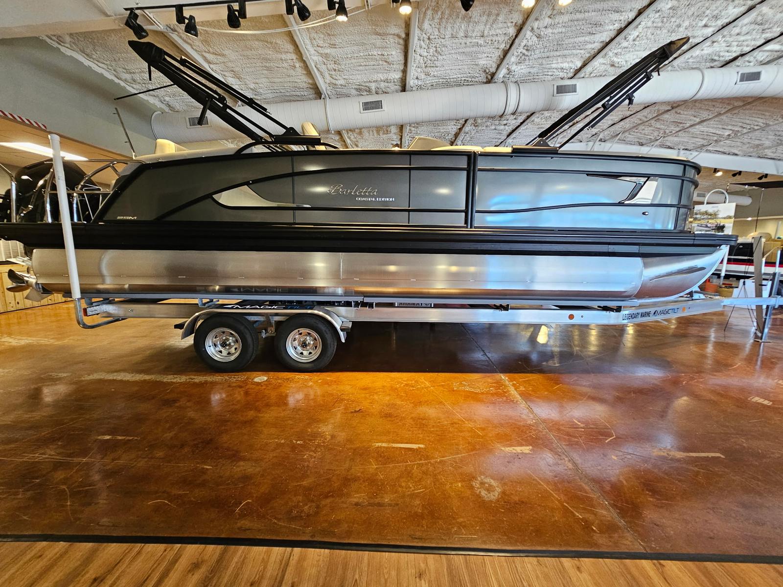 The 2025 Barletta Lusso L25M is more than just a pontoon boat for sale – it is an invitation to elevate your time on the water. With its powerful Mercury 400L V10 Verado engine, striking Gray Moonstone color scheme, Blackout Package Lusso, Marquesan Gray furniture, Amore Gray flooring, Coastal Edition Lusso features, Mercury Digital Pre-Rig for V10, Drop Ship Engine with V10 Prop, and double bimini setup, this Barletta boat for sale offers unmatched style, performance, and comfort.Whether you are seeking thrilling adventures, relaxing getaways, or memorable moments with loved ones, the Lusso L25M delivers on every front. Discover the joy of owning a pontoon that truly stands out from the crowd. Contact your local dealer today to learn more about the Barletta Lusso L25M and start your next chapter of boating excellence.