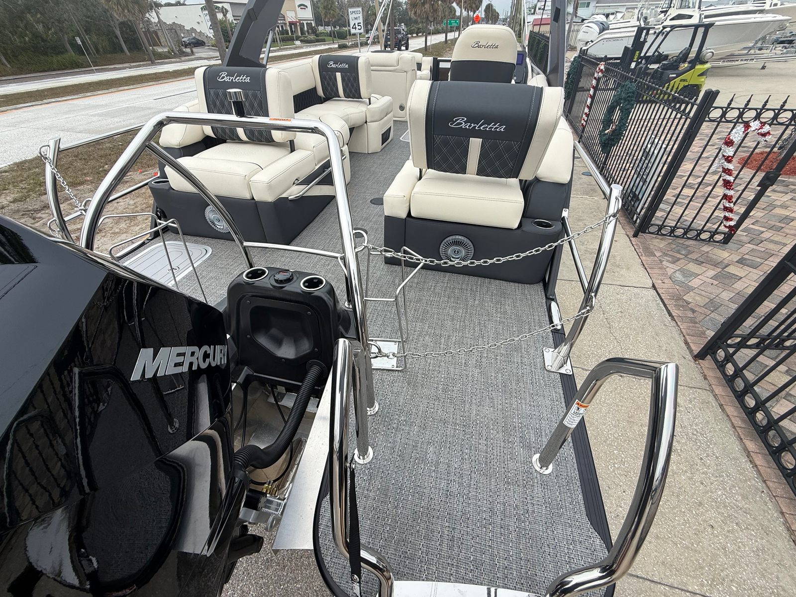 Powering the Barletta Lusso L25MA is a single Mercury (D) 400L V10 Verado engine, delivering a robust 400 horsepower. This state-of-the-art engine ensures smooth acceleration, impressive top speeds, and reliable performance in a variety of water conditions. The Mercury Digital Pre-Rig for V10 and the expertly rigged engine with a V10 prop guarantee optimal efficiency and responsiveness. Whether you’re cruising at a leisurely pace or seeking a thrilling ride, this pontoon boat offers the perfect balance of power and control.