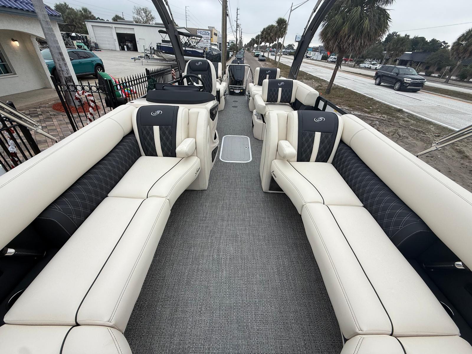 Step aboard and immerse yourself in the luxurious features that set the Barletta Lusso L25MA apart. The exterior boasts a striking Sweep Color in Winter White, complemented by the sophisticated Accent Color: Black Diamond. The Blackout Package Lusso adds a touch of elegance and modernity, ensuring you turn heads wherever you go. Inside, the furniture is upholstered in Linen with Onyx accents, creating a refined and inviting atmosphere. The flooring in Amore Gray is both stylish and practical, providing comfort underfoot and easy maintenance.The Coastal Edition Lusso enhances the boat’s durability and appeal, making it ideal for a variety of environments. The Double Bimini Arch Models offer versatile shade options, allowing you to enjoy sunny days or seek shelter when needed. Every detail is thoughtfully designed to maximize comfort, convenience, and enjoyment.