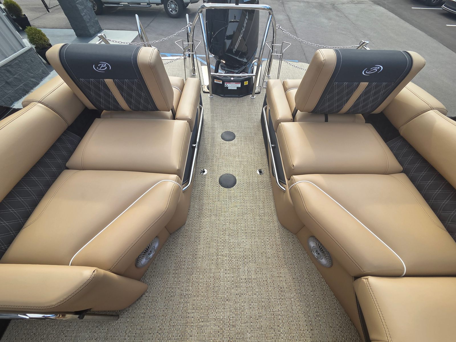 The 2026 Barletta Lusso L25MA is more than just a pontoon boat for sale—it’s a gateway to unforgettable adventures and cherished memories. With its powerful Mercury 400L V10 Verado engine, luxurious Amore Tan flooring, Carmella Tan with Onyx furniture, and innovative features like the Blackout Package Lusso railskin and Meridian Flip Table, this boat offers unmatched comfort, style, and performance.Protected by Metal Jacket Protectant and illuminated by stunning white underdeck and underwater lighting, the Lusso L25MA is built for both beauty and durability. The onboard battery charger and advanced rigging ensure convenience and reliability, making every outing smooth and enjoyable.If you’re ready to elevate your boating experience, the Barletta Lusso L25MA is the perfect choice. Discover the excitement, relaxation, and luxury that await—contact your local dealer today to learn more about this exceptional Barletta boat for sale and start your next adventure on the water.