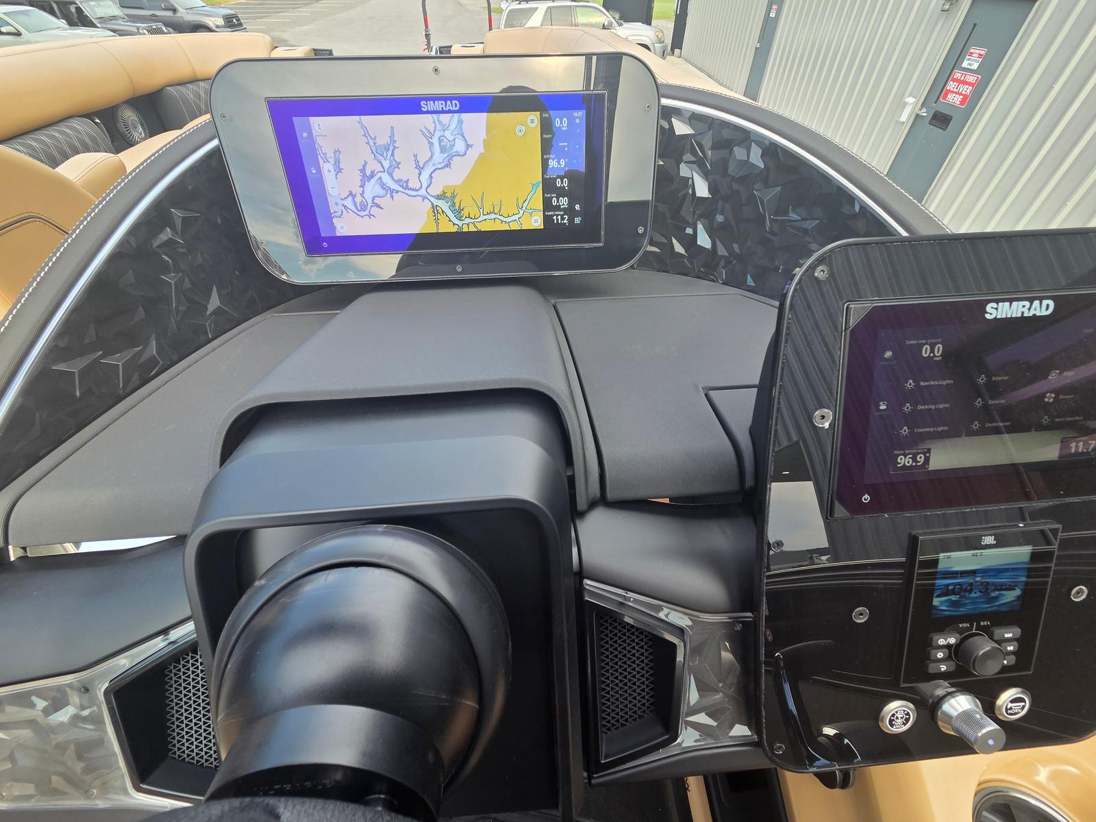 Powering the Barletta Lusso L25MA is a single Mercury (D) 400L V10 Verado engine, delivering a robust 400 horsepower. This engine is expertly rigged with a V10 prop, ensuring smooth acceleration, impressive speed, and reliable handling. Whether you’re cruising across the lake or towing water toys, the Lusso L25MA offers a thrilling ride with the confidence of Mercury’s renowned engineering. The Mercury Digital Pre-Rig for V10 enhances control and responsiveness, making every journey effortless and enjoyable. With this level of power and precision, the Lusso L25MA is designed to satisfy both seasoned boaters and those new to pontoon adventures.