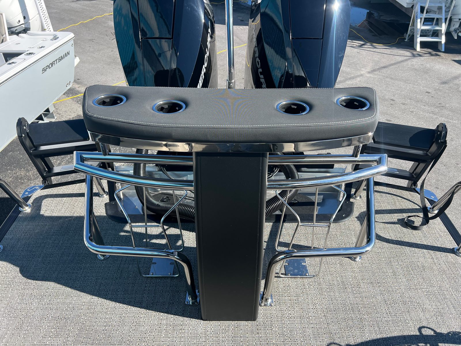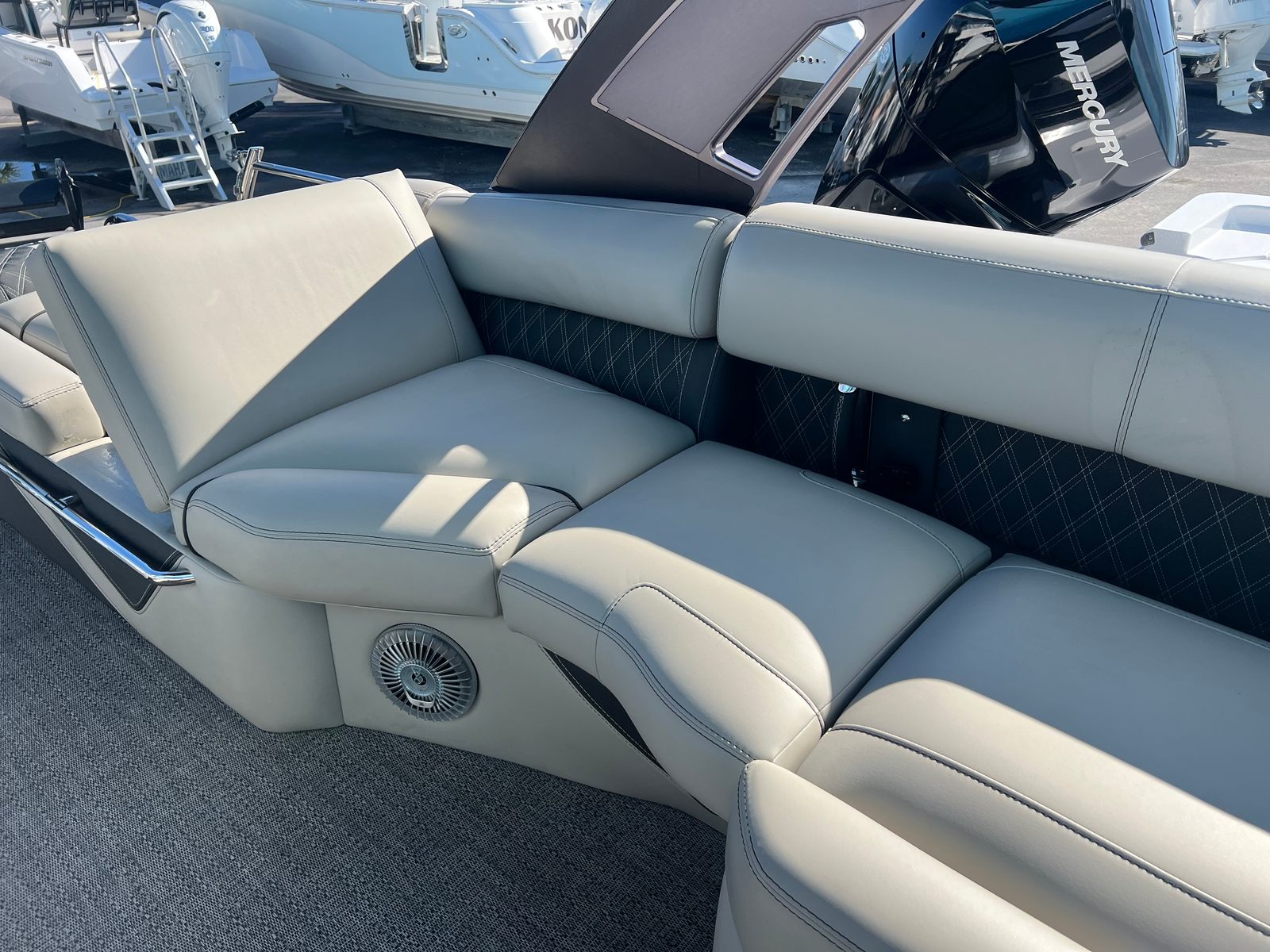 Under the hood, the Barletta Lusso L25MAT boasts twin Mercury 400L V10 Verado engines, delivering a combined 800 horsepower. This powerful setup ensures exhilarating acceleration, smooth cruising, and exceptional handling, whether you’re exploring open waters or navigating tight docking spaces. The Pre-Rig V10 (350/400) Twin JPO and Rig Twin Engine with Prop provide seamless integration and optimal performance, making this pontoon boat for sale a top contender for those who demand the best in marine engineering. The twin-engine configuration not only enhances speed and agility but also offers added reliability and control, especially during challenging conditions.