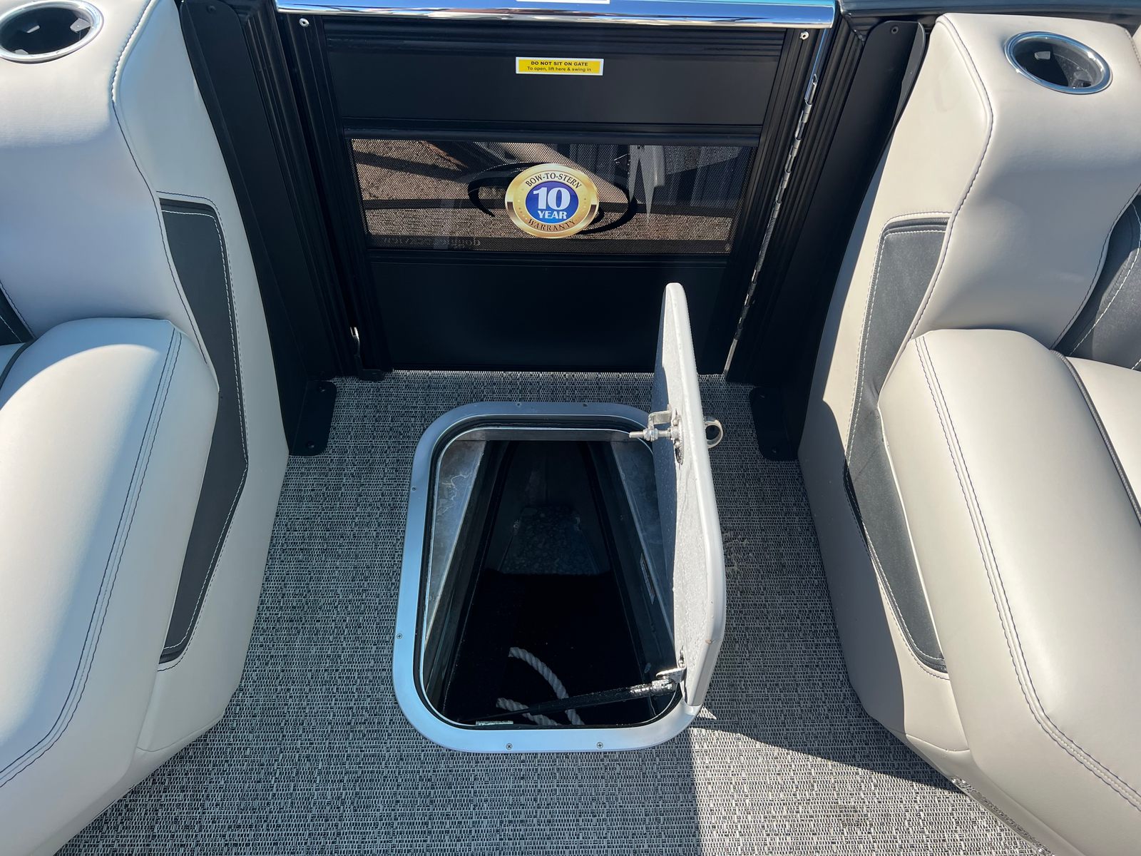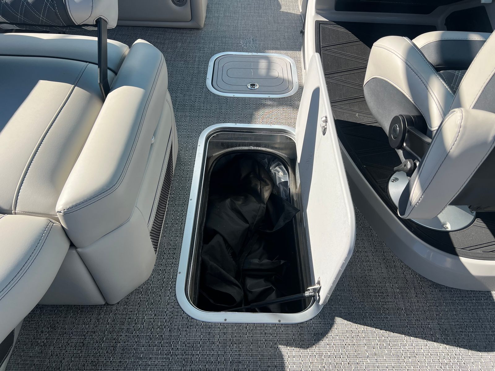 Practicality meets luxury in the Barletta Lusso L25MAT. The spacious layout allows for easy movement and plenty of storage for gear, snacks, and water toys, making it perfect for extended outings. The twin-engine setup not only boosts performance but also simplifies docking and maneuvering, giving you greater control in tight spaces. Fuel efficiency is enhanced by the advanced Mercury Verado engines, allowing you to spend more time on the water and less time refueling. The durable flooring and furniture are designed to withstand the elements, ensuring your investment remains in top condition for years to come. Exterior lighting adds safety and style, illuminating your path during nighttime adventures and creating a welcoming atmosphere for evening gatherings.