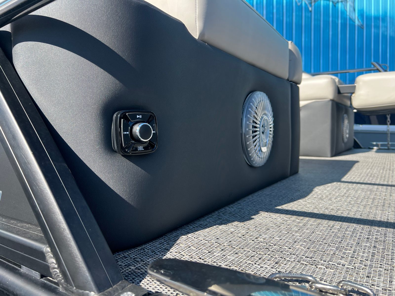 Owning the Barletta Lusso L25MAT means embracing a lifestyle of fun, relaxation, and social connection. This pontoon boat for sale is designed with comfort and enjoyment in mind, offering spacious seating areas perfect for lounging, entertaining, or soaking up the sun. The high-performance twin Mercury engines provide the thrill of speed and the confidence of reliable power, while the advanced rigging and pre-rig systems ensure hassle-free operation. The double bimini arches offer flexible shade, making it easy to adapt to changing weather and keep everyone comfortable. With its striking color scheme and premium materials, the Lusso L25MAT is sure to turn heads and impress guests every time you set sail.