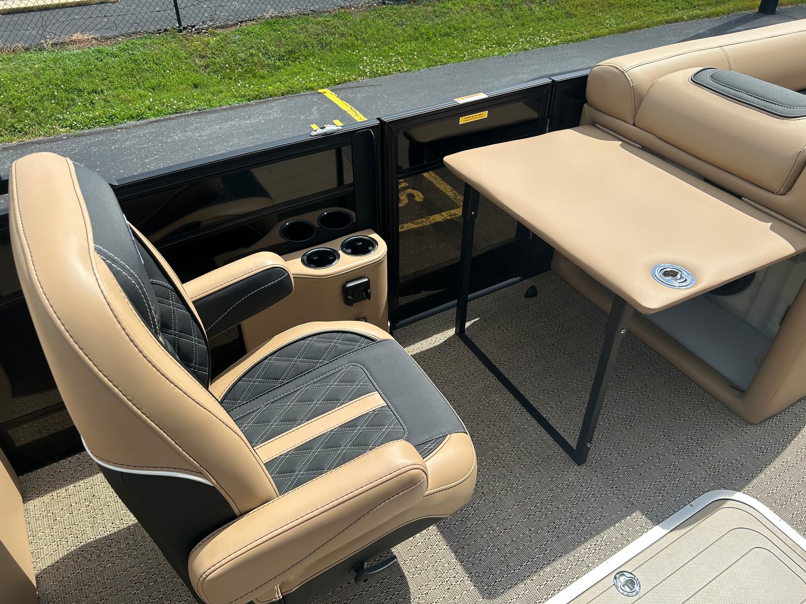 Step aboard the Barletta Lusso L25QCSS and discover a world of premium features designed to elevate your time on the water. The rig engine is equipped with a stainless steel prop, ensuring durability and optimal performance. Exterior lighting, including white underdeck and underwater illumination, creates a captivating ambiance for evening outings and enhances visibility for added safety. The flooring features Amore Tan, providing a comfortable and stylish foundation that complements the boat’s overall aesthetic.The railskin packages include the Blackout Package Lusso, adding a touch of sophistication and modern flair. The furniture is upholstered in Carmella Tan with Onyx accents, offering plush seating and a luxurious feel throughout the deck. Digital gauges provide clear, easy-to-read information at a glance, while the accent color in Black Diamond ties together the boat’s contemporary look. Every detail of the Lusso L25QCSS has been thoughtfully designed to deliver an exceptional boating experience.