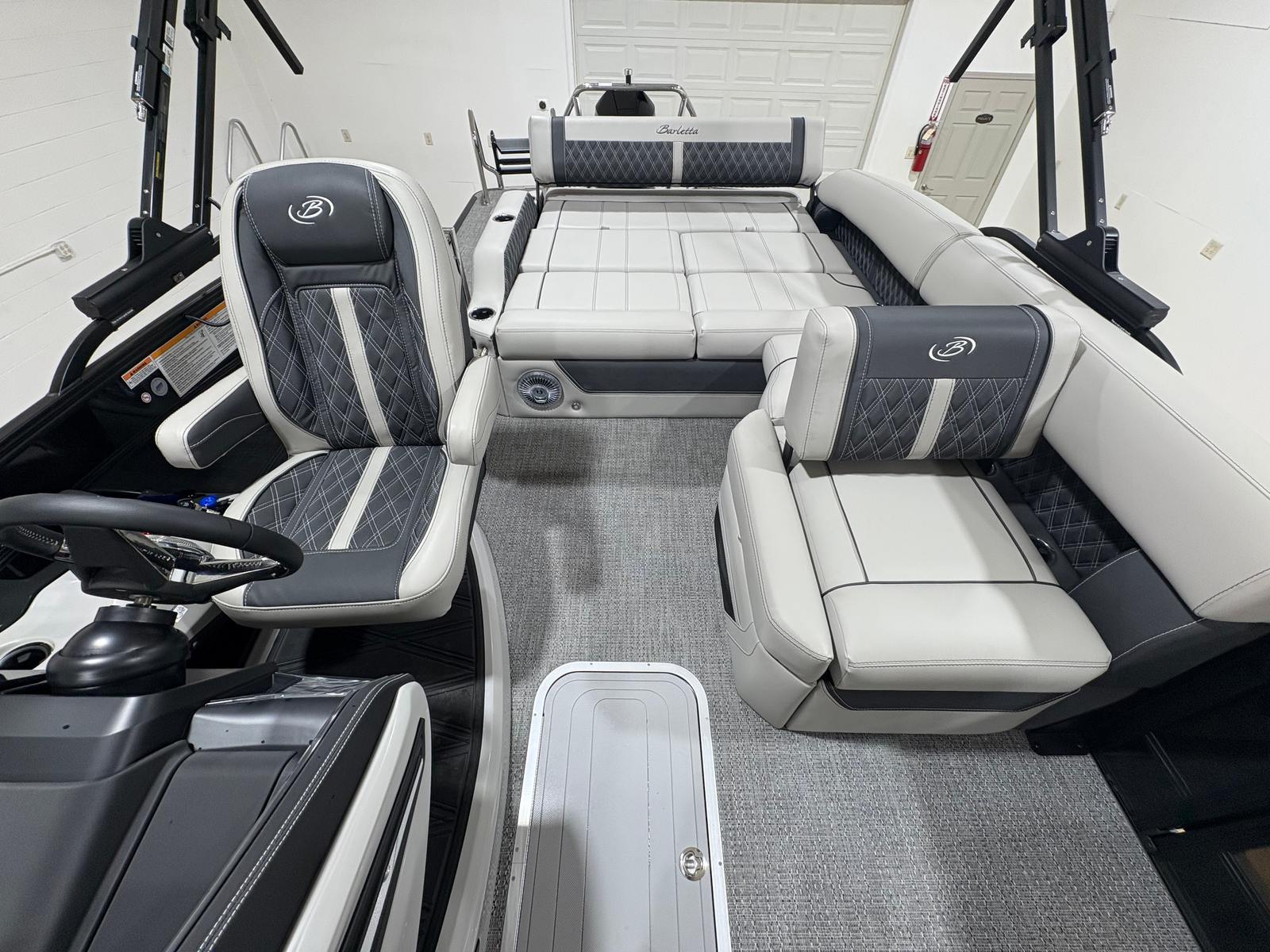 Powering the Barletta Lusso L25U is a single Mercury 300L Verado V8 engine, renowned for its smooth operation and impressive horsepower. With 300 HP at your command, this pontoon boat delivers exhilarating acceleration and reliable cruising speed, whether you’re exploring open water or towing water toys. The Mercury Digital DTS Pre-Rig for VERADO engines with Vessel Link ensures seamless integration and precise control, while hydraulic and power assist steering make handling effortless. The stainless steel prop enhances durability and performance, allowing you to navigate with confidence and agility.