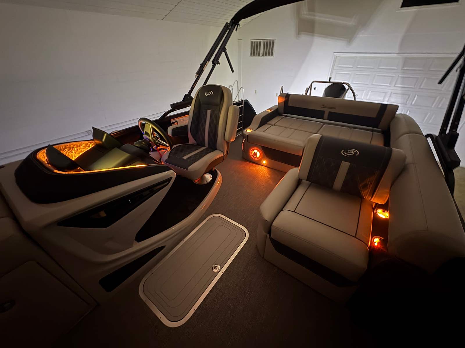 The Barletta Lusso L25U is as practical as it is beautiful. Its generous length provides ample storage for gear, water toys, and personal items, keeping the deck clutter-free and organized. The sturdy construction and reliable Mercury engine ensure peace of mind during every outing. Docking is simplified thanks to the responsive steering and power assist features, making it easy to navigate tight spaces or busy marinas. The efficient engine and digital controls contribute to fuel savings, allowing you to spend more time on the water and less at the pump. Exterior lighting enhances safety and visibility, making evening adventures both enjoyable and secure.