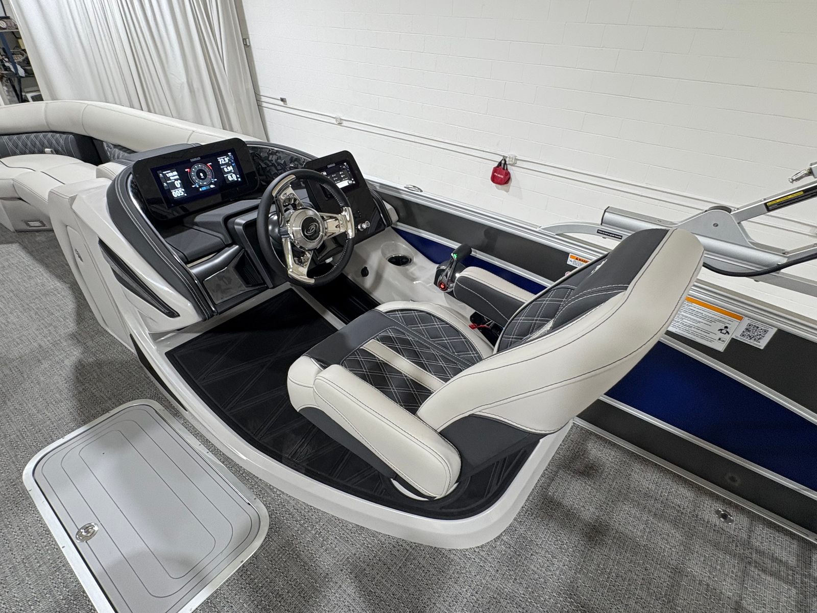 At the heart of the Barletta Lusso L25UC is a powerful Mercury 300L Verado V8 engine, delivering an exhilarating 300 horsepower. This advanced outboard engine is renowned for its smooth, quiet operation and robust performance, making it ideal for both leisurely cruises and high-speed adventures. The Mercury Digital DTS Pre-Rig for VERADO engines with Vessel Link ensures seamless integration and precise control, while the hydraulic and power assist steering provides effortless handling. Whether you are navigating calm lakes or exploring open waters, this pontoon boat offers a responsive and enjoyable ride every time.