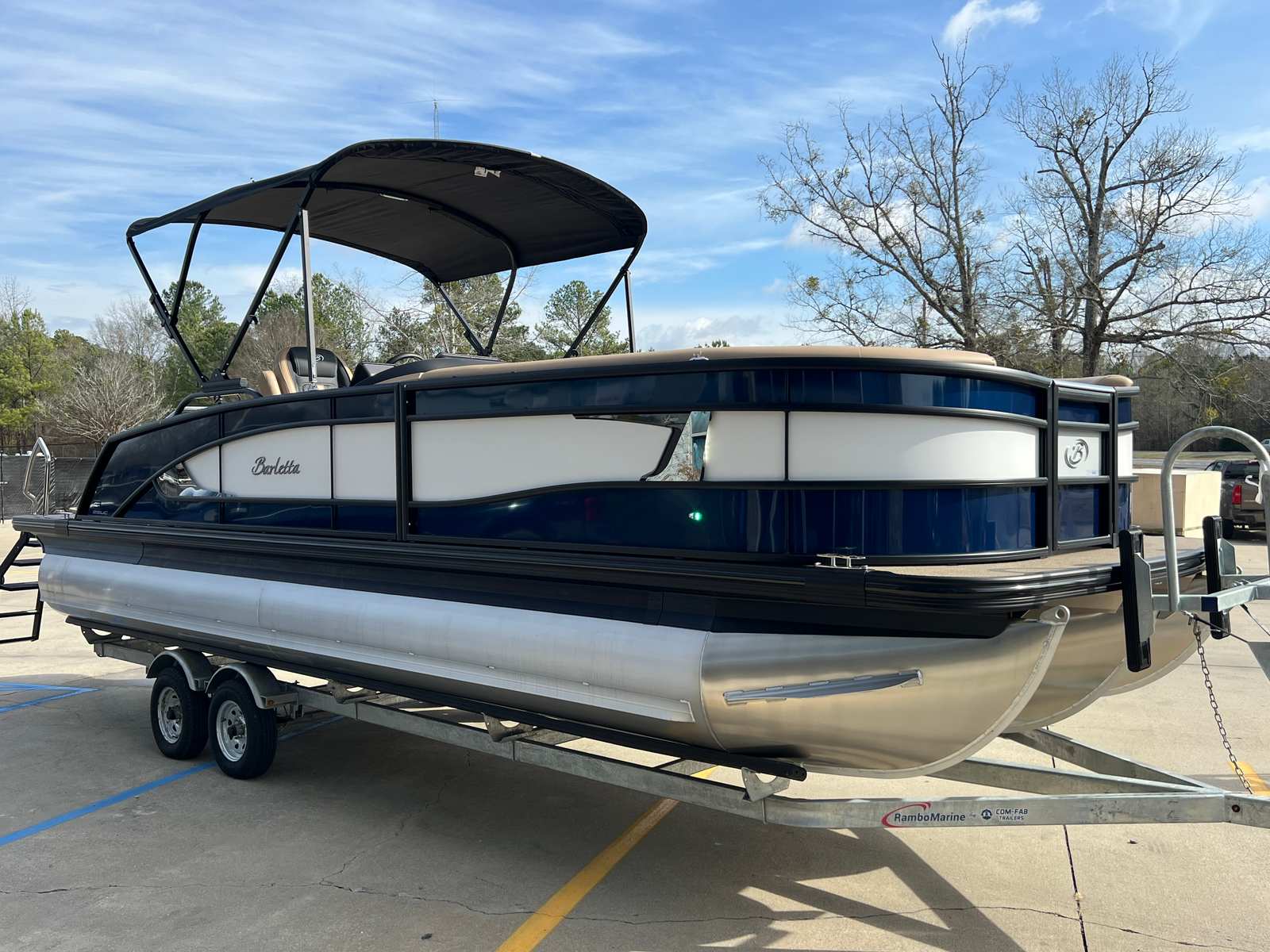 In summary, the 2026 Barletta Lusso L25UC is a standout pontoon boat for sale that offers unmatched luxury, performance, and versatility. With its striking Blue Sapphire and Winter White color scheme, Blackout Package Lusso railskin, Carmella Tan with Onyx furniture, and Amore Tan flooring, this boat is as beautiful as it is functional. The powerful Mercury 300L Verado V8 engine, advanced digital controls, and thoughtful features like pre-wiring for an additional bimini and an onboard battery charger with two batteries make this pontoon a joy to own and operate.Whether you are seeking adventure, relaxation, or the perfect setting for social gatherings, the Barletta Lusso L25UC delivers on every front. Do not miss your chance to experience the ultimate in pontoon boating—contact your local dealer today to learn more about this exceptional Barletta boat for sale and make your dream of luxury on the water a reality.