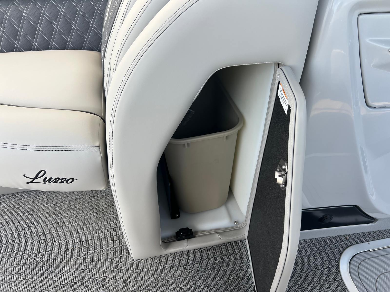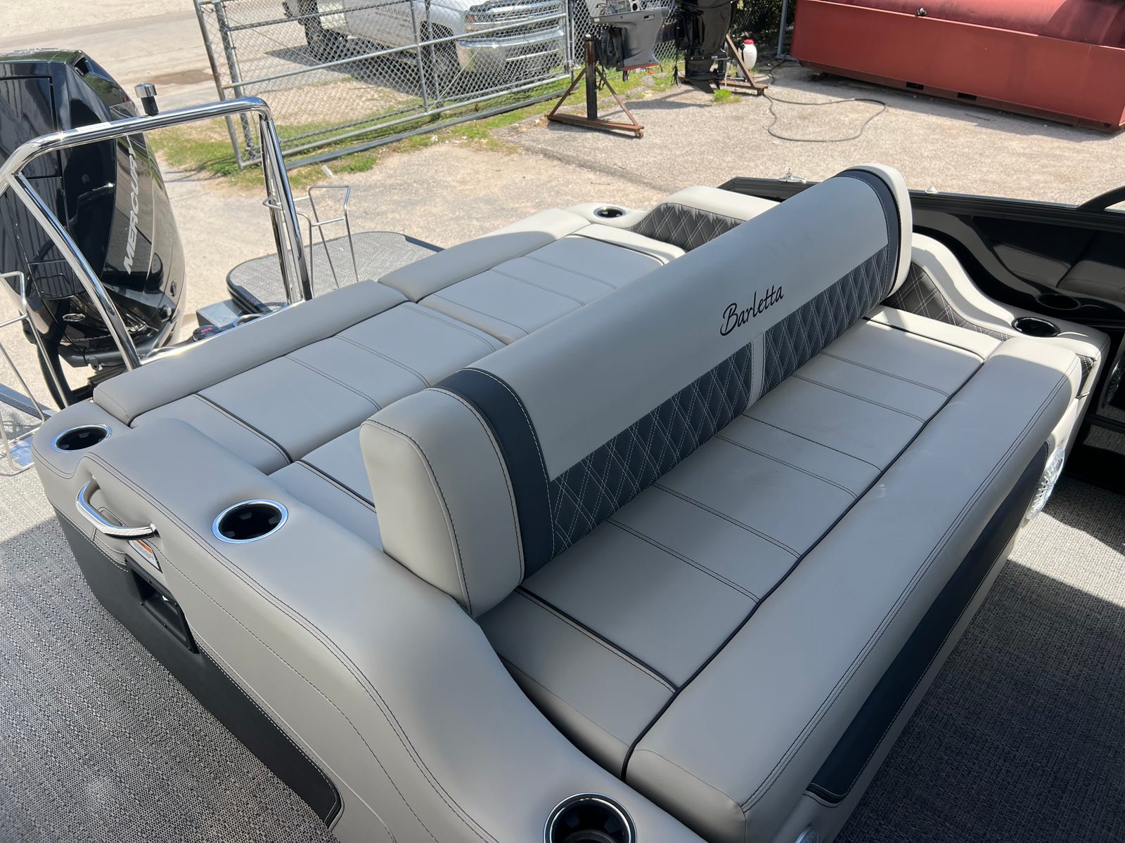 Step aboard the Barletta Lusso L25UC and you will immediately notice the Marquesan Gray furniture with Charcoal Accent, creating a sophisticated and inviting atmosphere. The Amore Gray flooring adds a touch of elegance underfoot, while the Black Diamond accent color on the exterior gives the boat a bold and modern look. The adjustable pedestal on the captain’s chair ensures optimal comfort and visibility for the captain, while the helm windshield provides protection from wind and spray, enhancing the overall boating experience.This pontoon is equipped with a double bimini, including an additional power bimini, offering ample shade and protection from the sun. The Metal Jacket Protectant on the exterior helps maintain the boat’s pristine appearance, making cleaning and maintenance a breeze. The rigging includes a V10 prop, perfectly matched to the Mercury engine for optimal performance and efficiency.Inside, you will find a table with a pedestal and base, complete with Yeti-ready cupholders, making it easy to enjoy snacks and drinks while socializing. Every detail of the Lusso L25UC is designed with comfort and convenience in mind, ensuring that every outing is memorable.