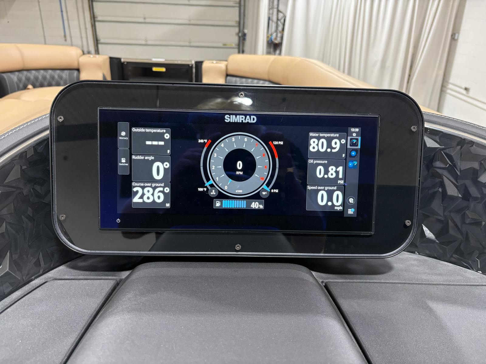 At the heart of the Barletta Lusso L25UC is a powerful Mercury 300L Verado V8 engine, delivering an impressive 300 horsepower. This single-engine setup ensures smooth acceleration, responsive handling, and the ability to reach exhilarating speeds, all while maintaining the quiet, refined ride that Barletta is known for. The Mercury Digital DTS Pre-Rig for VERADO engines with Vessel Link provides seamless digital throttle and shift control, enhancing both safety and convenience. Hydraulic and power assist steering make maneuvering effortless, whether you are cruising open waters or docking at your favorite marina. With a stainless steel prop and precision rigging, this pontoon boat is engineered for reliability and peak performance every time you hit the water.