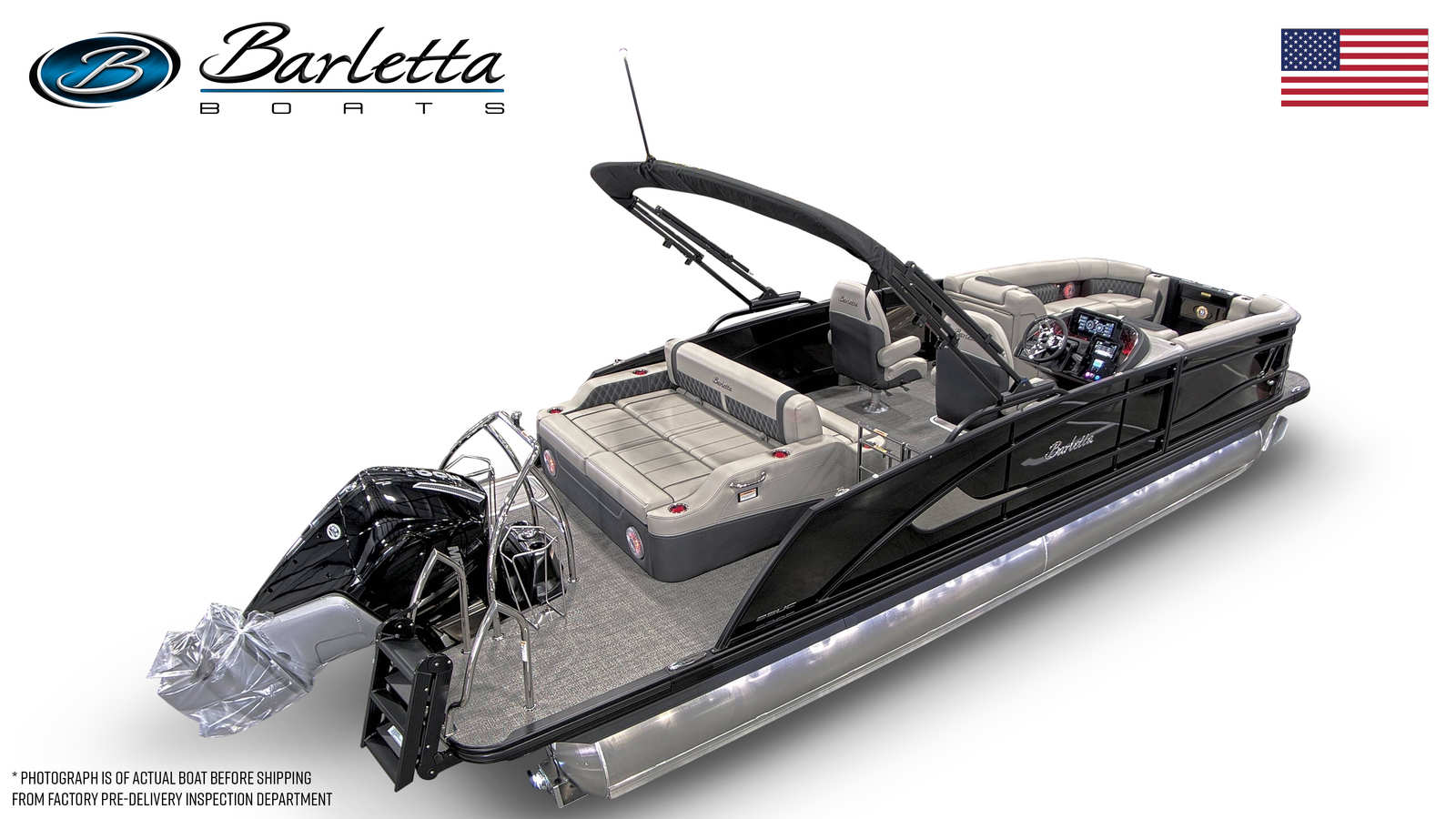 Step aboard the Barletta Lusso L25UC and discover a world of premium features designed to maximize comfort and enjoyment. The sweep color and accent color in Black Diamond create a bold, sophisticated exterior, complemented by the Blackout Package Lusso railskin for a striking visual impact. Inside, the Marquesan Gray/Onyx furniture offers plush seating and refined style, while the Amore Gray flooring adds a touch of elegance and durability underfoot.Digital gauges provide clear, real-time information at a glance, keeping you informed and in control throughout your journey. Exterior lighting, including white underdeck and underwater illumination, enhances both safety and ambiance, making evening cruises and dockside gatherings truly magical. Every detail of this pontoon boat is crafted to deliver a premium experience, from the high-quality materials to the advanced technology integrated throughout.