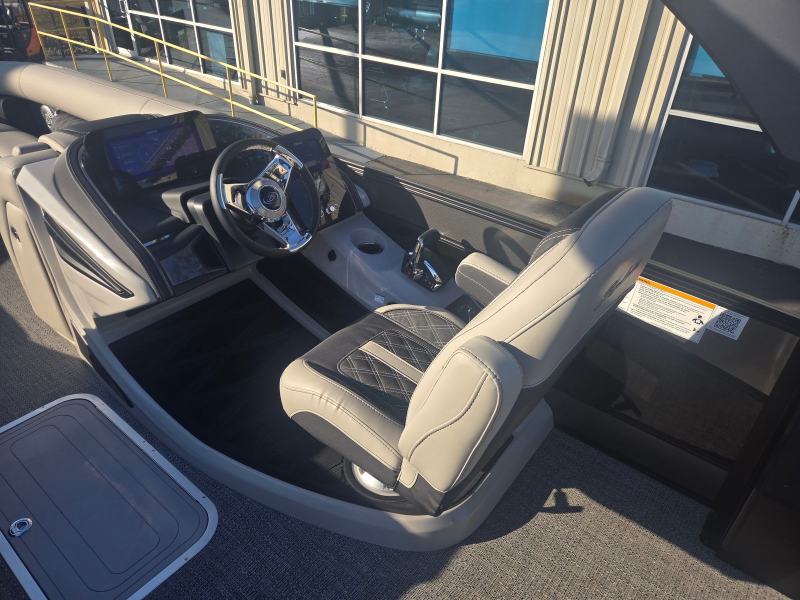 At the heart of the Barletta Lusso L25UCA is a powerful Mercury (D) 350L V10 Verado engine, delivering an impressive 350 horsepower. This single-engine configuration ensures smooth acceleration, responsive handling, and reliable performance across a variety of water conditions. The rig engine is equipped with a V10 prop, providing optimal thrust and efficiency for both leisurely cruising and spirited rides. Mercury Digital Pre-Rig for V10 enhances the driving experience with advanced controls and seamless integration, making every journey effortless and enjoyable.