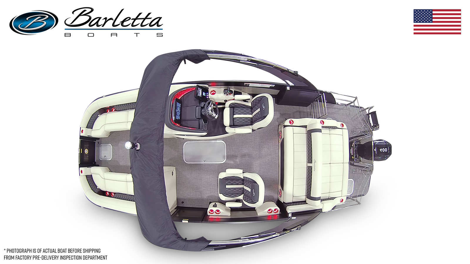The Barletta Lusso L25UCA is packed with features that set it apart in the world of luxury pontoons. The exterior boasts a striking Sweep Color in Matte Black, complemented by an Accent Color in Champagne, creating a sophisticated and modern look. The Blackout Package Lusso adds a touch of elegance and exclusivity, ensuring you turn heads wherever you go. Step aboard and you are greeted by plush Linen with Onyx furniture, offering both comfort and style for you and your guests. The Amore Gray flooring provides a durable and attractive foundation, perfect for barefoot relaxation or lively gatherings.This pontoon is also equipped with the Coastal Edition Lusso, enhancing its versatility and durability for various water conditions. Seat covers with the standard playpen offer protection and convenience, keeping your seating areas pristine and ready for use. Every detail of the Barletta Lusso L25UCA has been thoughtfully designed to maximize comfort, style, and functionality, making it a standout choice among pontoon boats for sale.