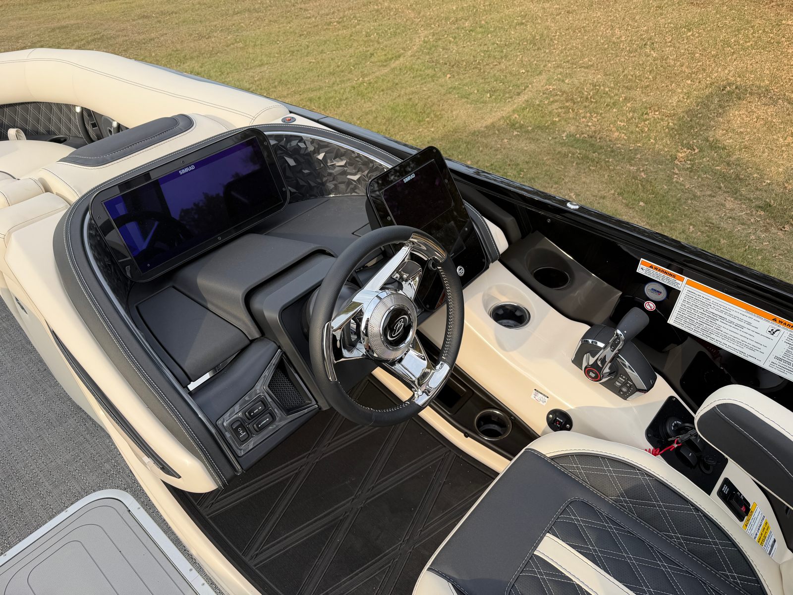 The Barletta Reserve Leggera 23UCA is loaded with premium features designed to elevate your boating experience. The standard all-black color scheme exudes sophistication, while the Amore Gray flooring is both stylish and practical, providing a comfortable surface that is easy to maintain. The Linen with Onyx furniture offers plush seating and a luxurious feel, ensuring every passenger enjoys maximum comfort. The Mercury (D) 400L V10 Verado engine is a powerhouse, and the Mercury Digital Pre-Rig for V10 ensures seamless integration and control. The engine is expertly rigged with a V10 prop for optimal efficiency and performance. At the helm, the AccuThruster System delivers precise control, making every journey smooth and enjoyable.