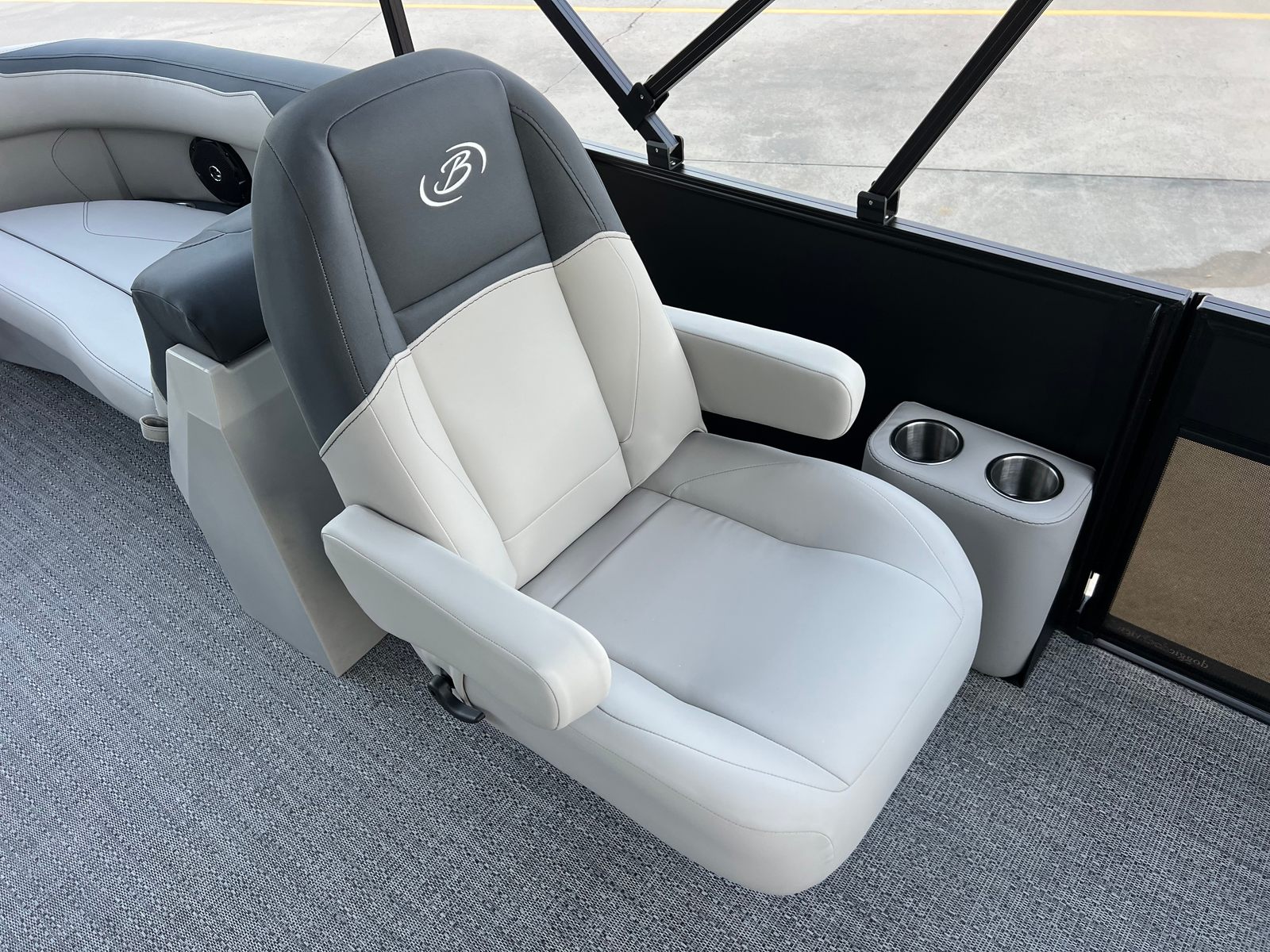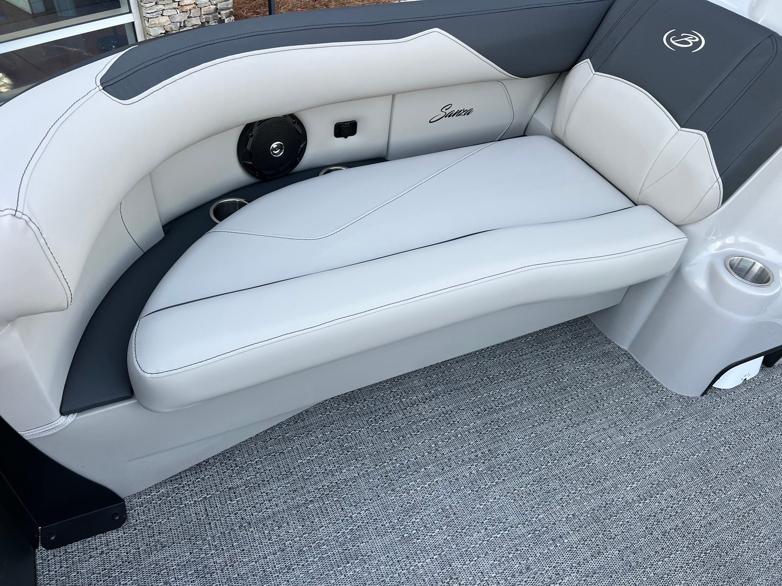 The versatility of the Barletta Sanza S22QC makes it the perfect companion for a wide range of activities. Imagine spending sunny afternoons cruising with family, anchoring at your favorite swimming spot, or hosting a lively gathering with friends. The spacious deck and comfortable seating make it ideal for socializing, while the powerful engine and stable triple toon design open up opportunities for water sports and exploration.For those who love fishing, the ample storage and open layout provide plenty of room for gear and easy movement around the deck. If relaxation is your goal, the plush seating and smooth ride create the perfect setting for enjoying the sights and sounds of nature, reading a book, or simply soaking up the sun.