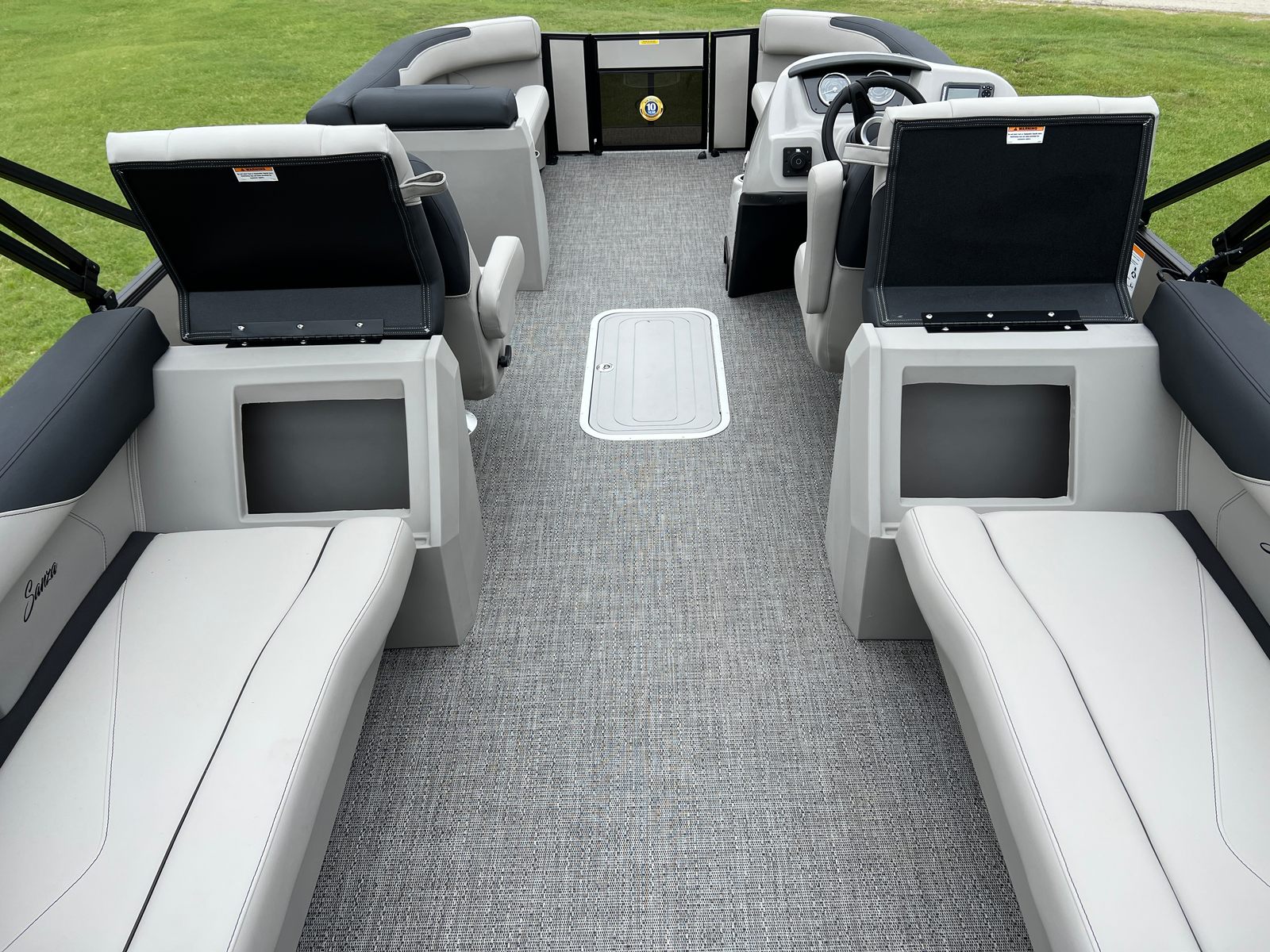 The Barletta Sanza S22QC is as practical as it is beautiful. The in-floor midship storage provides a convenient solution for keeping your belongings safe and accessible, while the durable Amore Gray flooring is easy to clean and maintain. Docking and maneuvering are made simple thanks to the responsive Mercury engine and the boat’s well-balanced design.Fuel efficiency is another key advantage, allowing you to spend more time on the water and less time at the pump. The pontoon’s size and layout make it easy to trailer, launch, and store, giving you the flexibility to explore new destinations and enjoy spontaneous adventures.