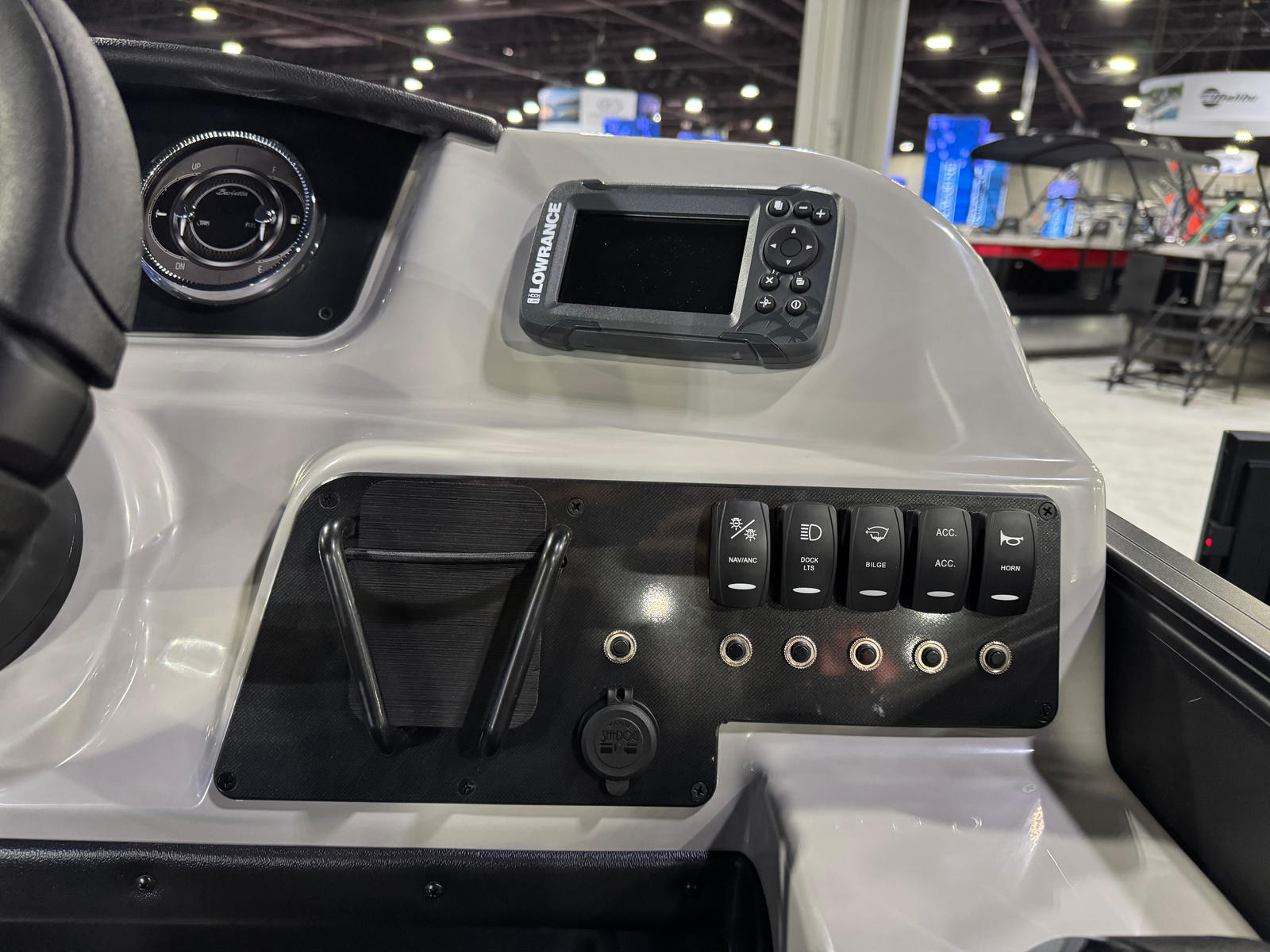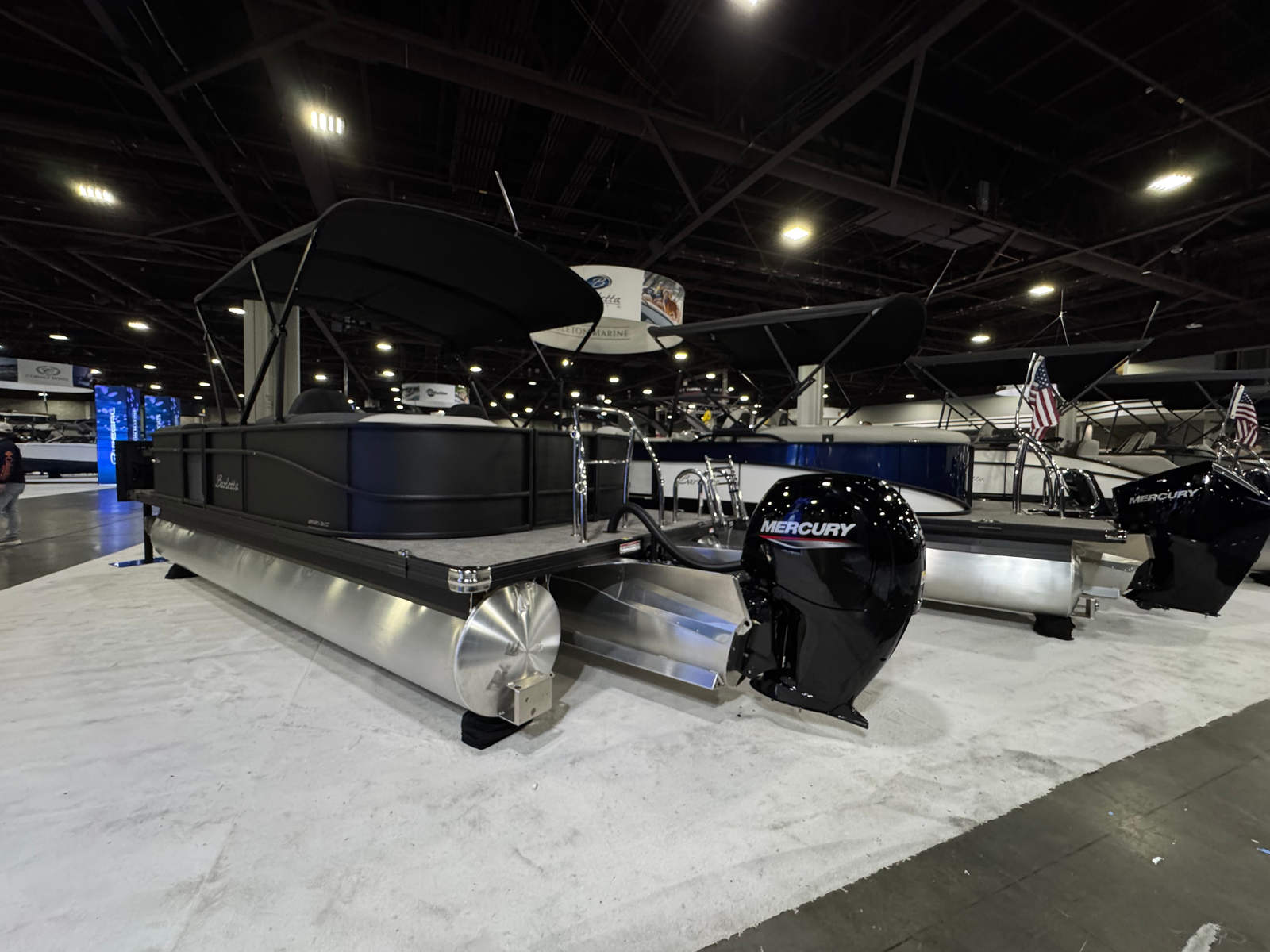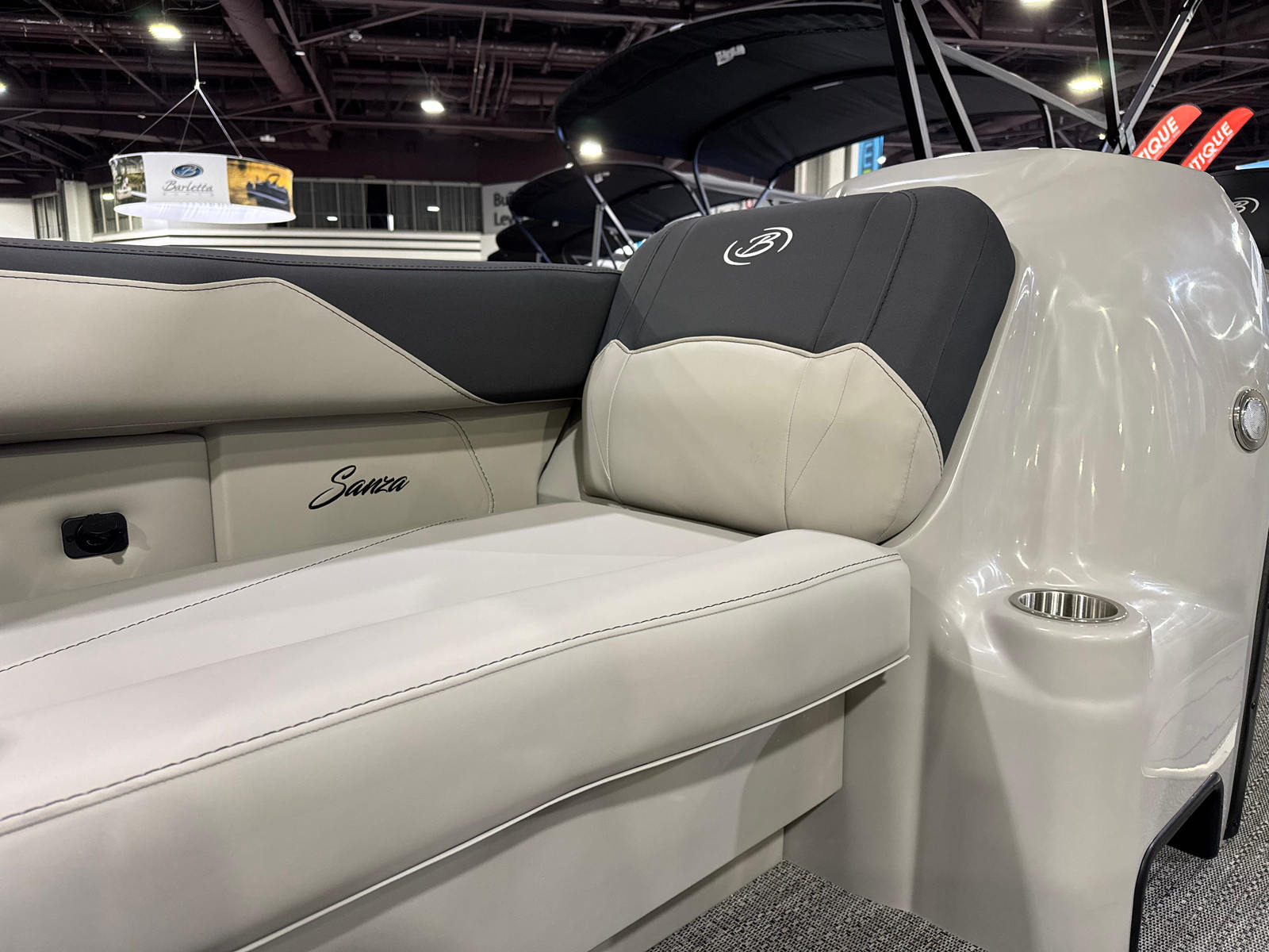 The Barletta Sanza S22QC is packed with special features that elevate your boating experience. The Matte Black Railskin color and Blackout Package Sanza provide a striking exterior look, while the Marquesan Gray with Onyx furniture offers plush seating and a contemporary vibe. The Amore Gray flooring is not only stylish but also durable and easy to maintain, ensuring your boat stays looking great season after season.One of the standout features is the Triple Toon Package Sanza, which adds an extra pontoon for enhanced stability and performance. This package also enables the inclusion of in-floor midship storage, providing ample space to stow your gear, water toys, and personal items securely and conveniently. The Mercury mechanical pre-rig and rigging with a standard prop make engine setup straightforward, so you can spend less time preparing and more time enjoying the water.