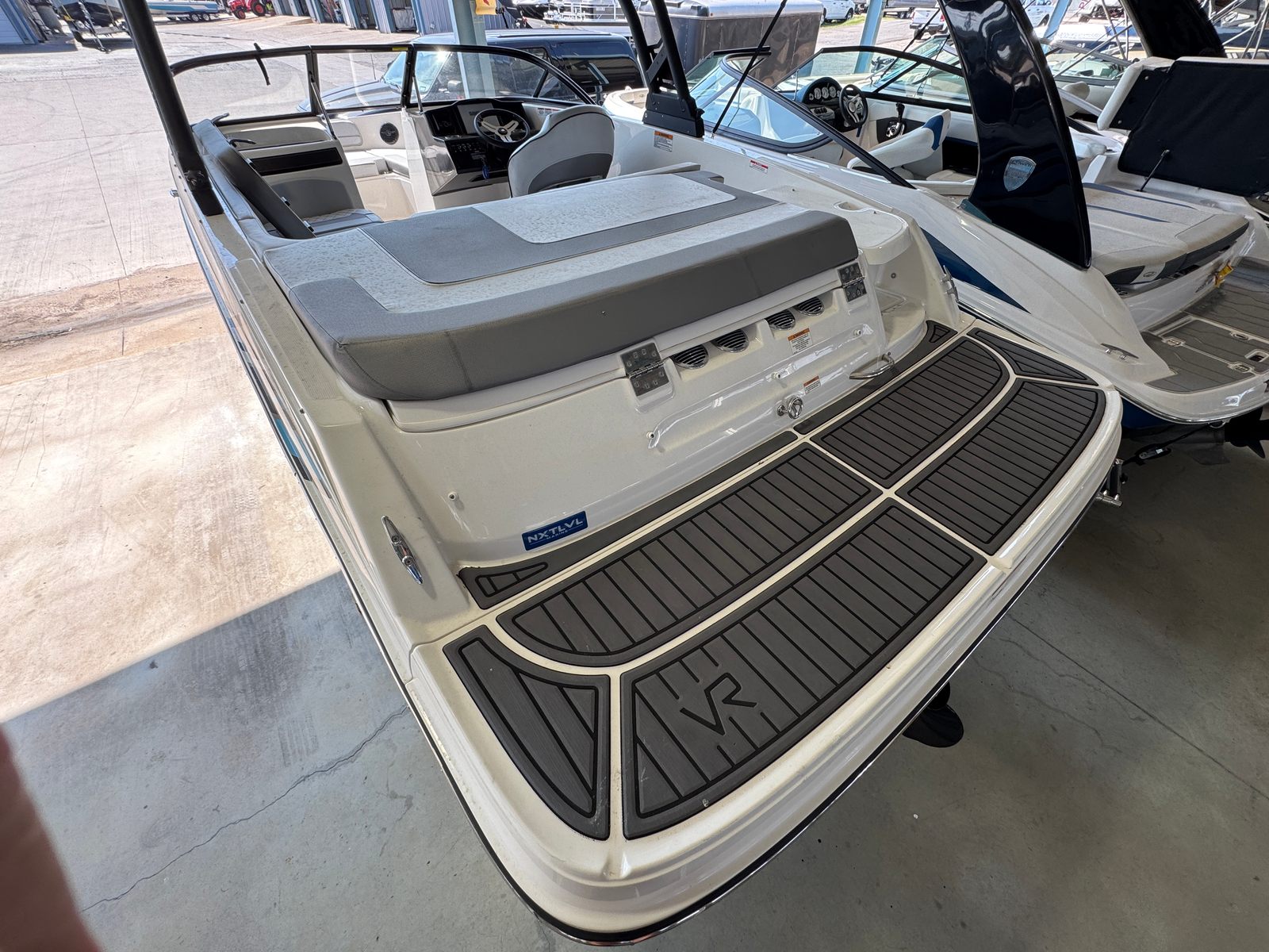 Under the hood, the Bayliner VR5 is powered by a single engine delivering an impressive 200 horsepower. This robust engine ensures smooth acceleration, responsive handling, and plenty of power for water sports, cruising, or simply enjoying a leisurely ride. Whether you’re towing a wakeboarder, zipping across the lake, or navigating through calm waters, the VR5’s performance capabilities make every outing thrilling and enjoyable. The efficient engine design also means you can spend more time on the water and less time at the fuel dock, making this Bowrider boat for sale a smart choice for both fun and practicality.