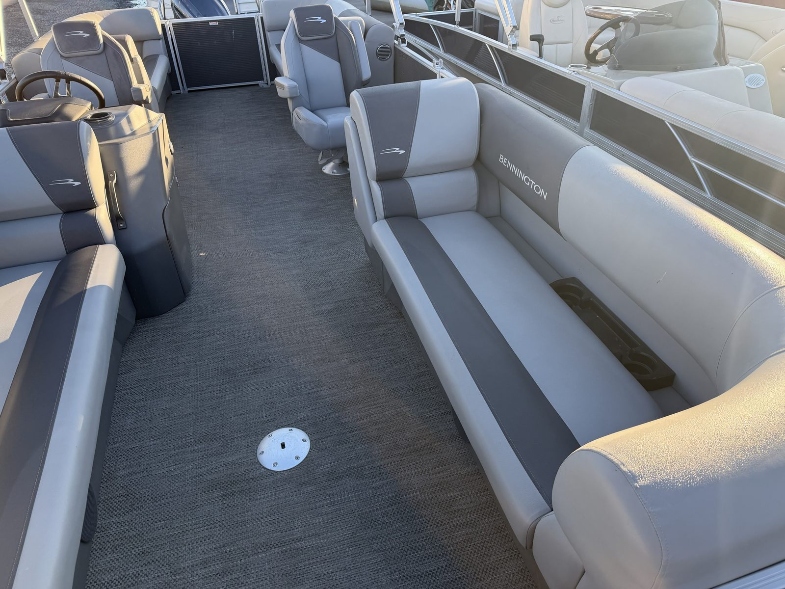 The 2024 Bennington 22 Svsr SPS Pontoon is more than just a boat – it’s an invitation to embrace the best of boating life. With its striking Shadow Grey/Carbon accents, Midnight Black canvas, Seagrass Silver Full Flooring, and powerful Yamaha F150XC engine, this used pontoon boat for sale offers style, performance, and value in one impressive package. The thoughtful features, spacious layout, and reliable engineering make it an ideal choice for families, friends, and anyone who loves spending time on the water. Don’t miss your chance to own a Bennington boat for sale that promises fun, relaxation, and unforgettable memories. Contact the dealer today to learn more and take the next step toward your boating adventure!