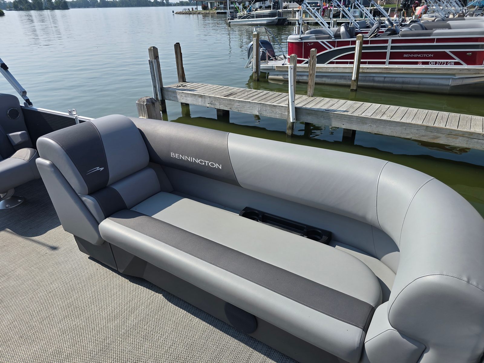 The 2024 Bennington 22 Svsr SPS pontoon boat is a standout choice for anyone searching for a high-quality pontoon boat for sale. With its powerful Yamaha F150XC engine, luxurious Simtex upholstery, ergonomic recliners, and stylish Anthracite and Shadow Grey accents, this vessel offers the perfect blend of performance, comfort, and visual appeal. The Seagrass Silver full flooring and thoughtful design details further enhance the boating experience, making every trip memorable.If you are ready to elevate your time on the water and enjoy the best that boating has to offer, the Bennington 22 Svsr SPS is the ideal companion. Discover the freedom, fun, and relaxation that come with owning a Bennington boat for sale, and contact the dealer today to learn more about making this exceptional pontoon yours.