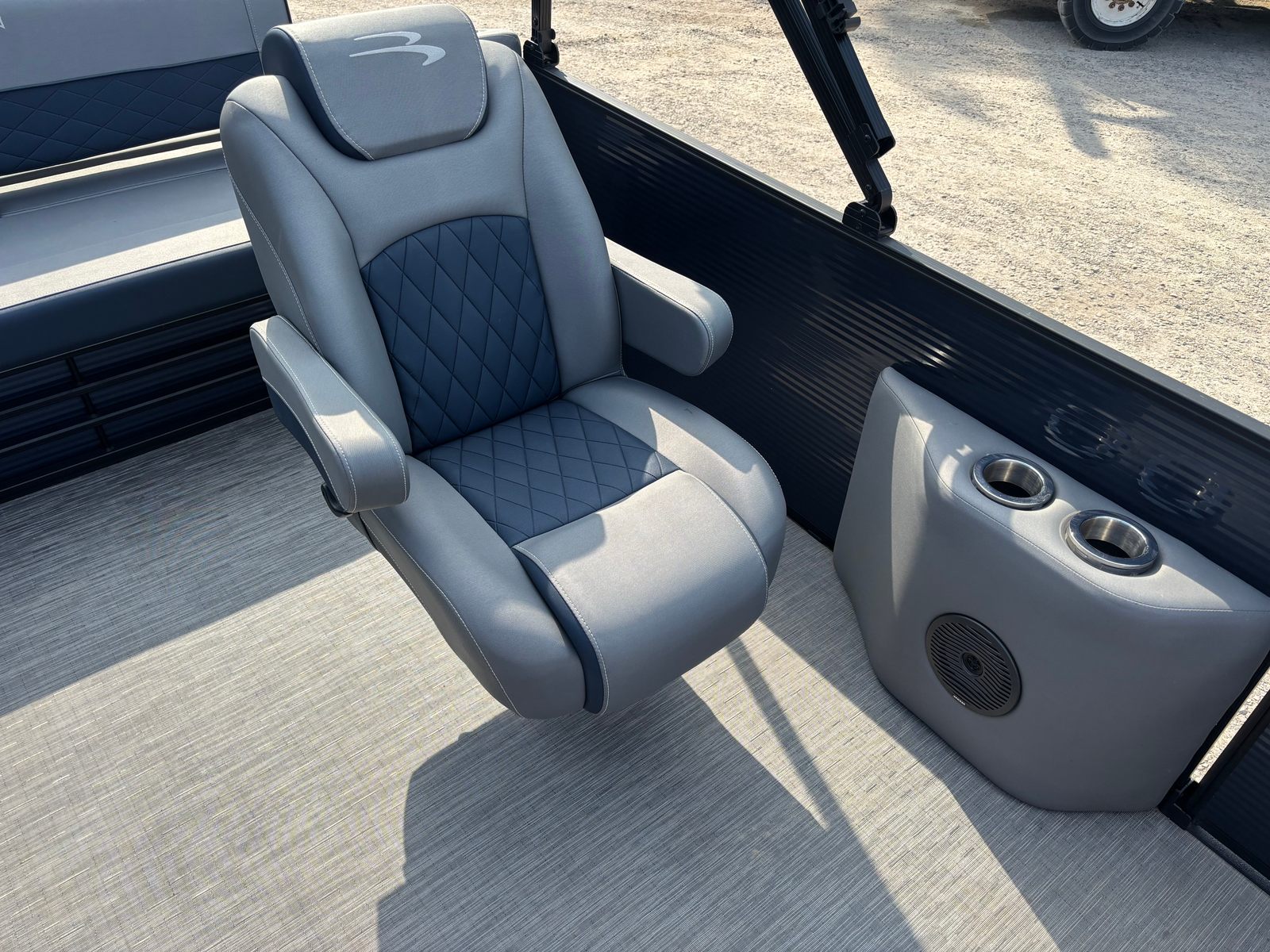 The Bennington 23 LSB pontoon boat is thoughtfully designed with comfort and convenience in mind. Its spacious deck layout allows for flexible seating arrangements, making it ideal for social gatherings, sunbathing, or simply relaxing with family and friends. The pontoon’s generous length ensures plenty of room for everyone on board, while the high-quality materials and finishes reflect Bennington’s reputation for luxury and durability.Special features of this model may include plush seating, a stylish helm station, and ample storage compartments for all your gear and essentials. The pontoon’s sturdy construction and attention to detail ensure a safe and enjoyable ride, even in choppier conditions. The 23 LSB’s design also emphasizes ease of use, with intuitive controls and a layout that makes docking and maneuvering a breeze.