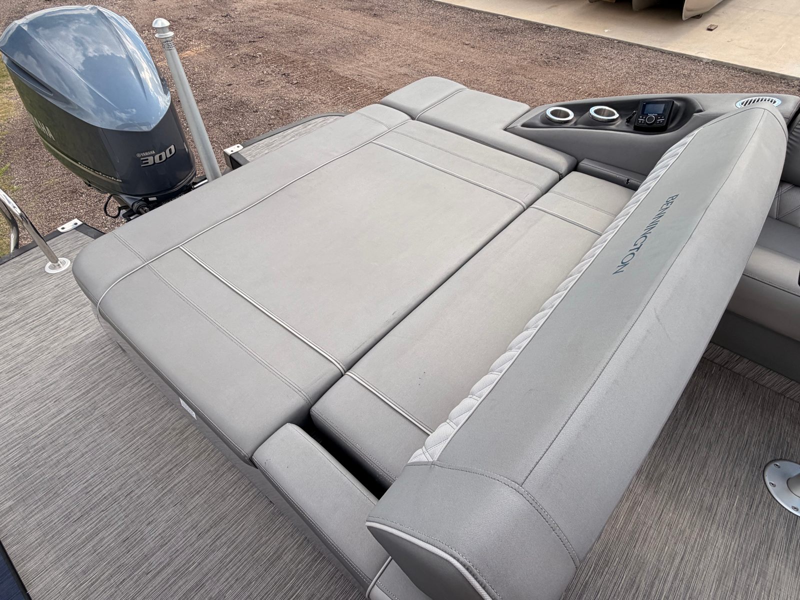 Under the deck, the Bennington 25 Qxsb is powered by a robust single engine delivering an impressive 300 horsepower. This powerful setup ensures exhilarating acceleration, smooth cruising, and the capability to handle a variety of water conditions with ease. Whether you’re gliding across calm lakes or navigating busier waterways, the 300 HP engine provides the confidence and excitement you crave. The responsive handling and impressive top speed make this Bennington boat for sale a true performer, perfect for those who appreciate both power and precision on the water.