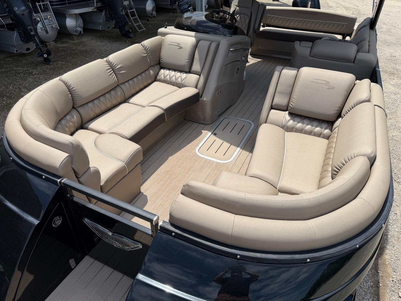 Powering this Bennington pontoon is a robust single engine delivering an impressive 300 horsepower. This powerful setup ensures that the 25 Qxsbwa ESP is not just about comfort and style—it also offers exhilarating performance on the water. Whether you are cruising at a leisurely pace or opening up the throttle for some high-speed fun, the responsive handling and smooth ride of this pontoon boat make every outing a pleasure. The combination of a single, high-output engine and Bennington’s renowned ESP (Elliptical Sport Package) hull design provides enhanced stability, agility, and efficiency, making it easy to navigate a variety of water conditions with confidence.