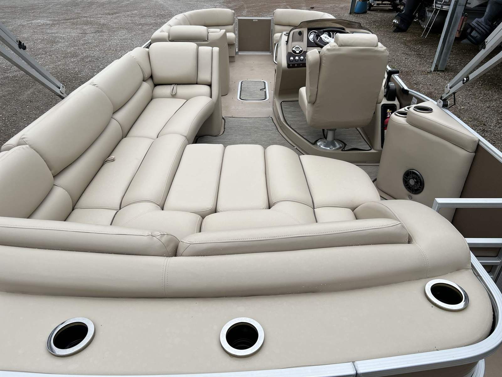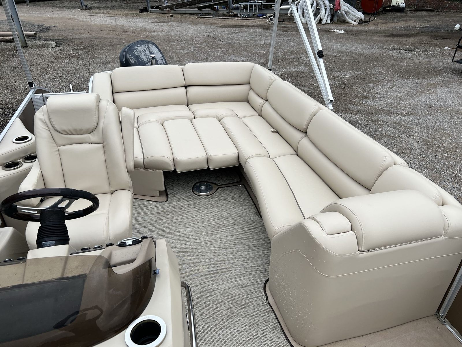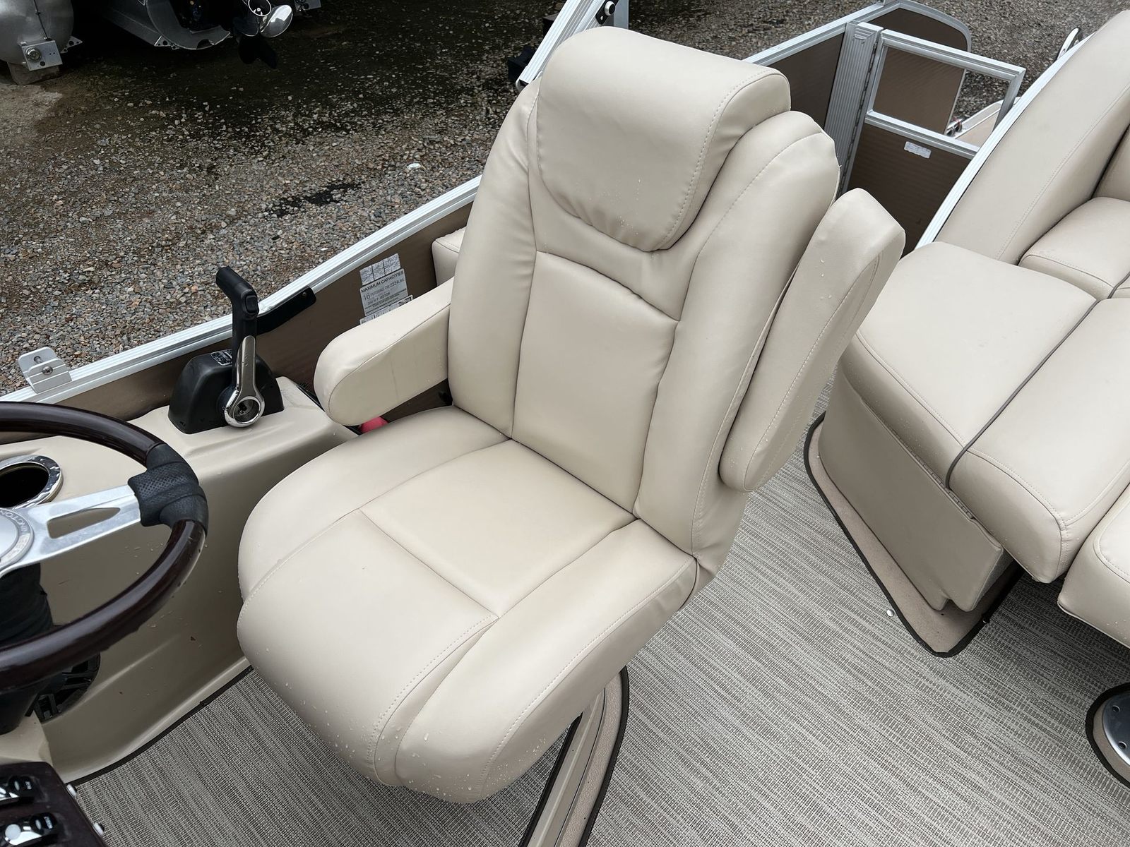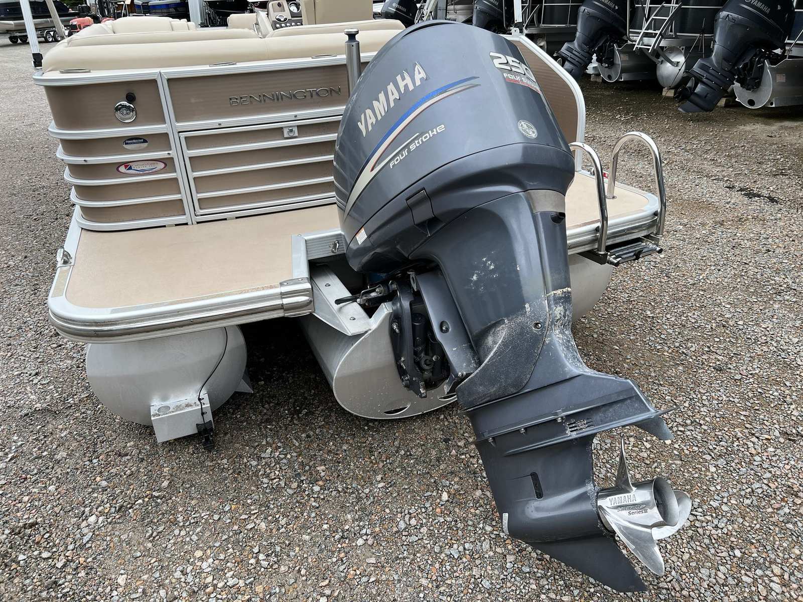 Powering the Bennington 2550 RCL is a robust single engine delivering an impressive 250 horsepower. This setup ensures that the pontoon is not only capable of smooth and steady cruising but also has the muscle for more spirited rides when the mood strikes. Whether you are gliding across calm waters or picking up speed for a bit of excitement, the 250 HP engine provides reliable performance and responsive handling. The combination of power and efficiency makes this pontoon boat for sale a versatile option for a wide range of boating activities, from leisurely sightseeing to towing water toys.