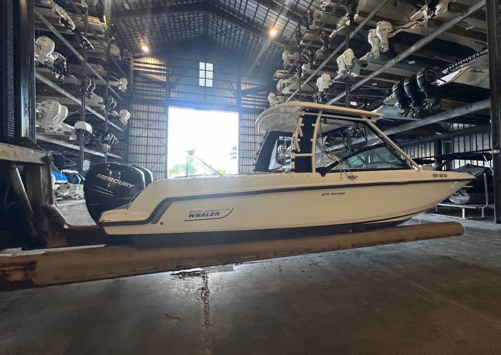 The Boston Whaler 270 Vantage is packed with features that enhance both functionality and enjoyment on the water. The dual console layout is a standout feature, offering the flexibility to transition seamlessly between different activities. The spacious cockpit and bow seating areas provide plenty of room for relaxation, socializing, or gearing up for water sports. The ergonomic helm station is designed for ease of use, giving the captain full control and excellent visibility. Storage compartments are thoughtfully integrated throughout the boat, making it easy to stow gear, life jackets, and other essentials. The high-quality construction and premium materials used in the 270 Vantage ensure durability and longevity, so you can enjoy your investment for years to come.