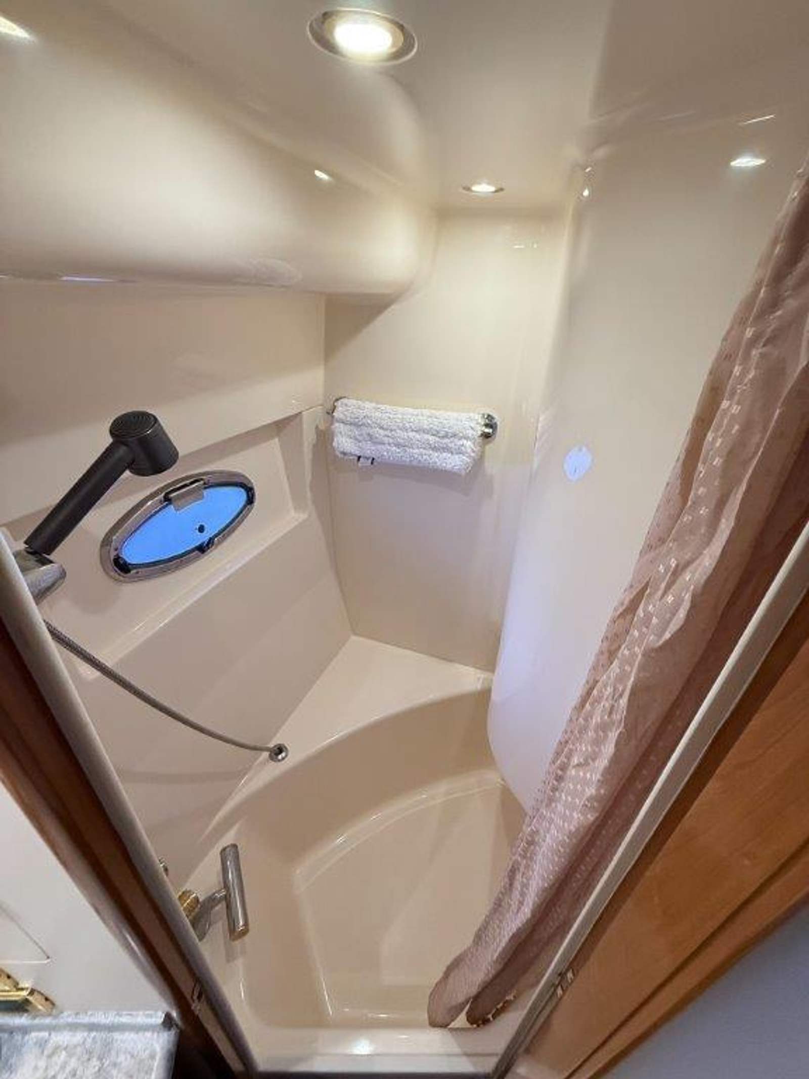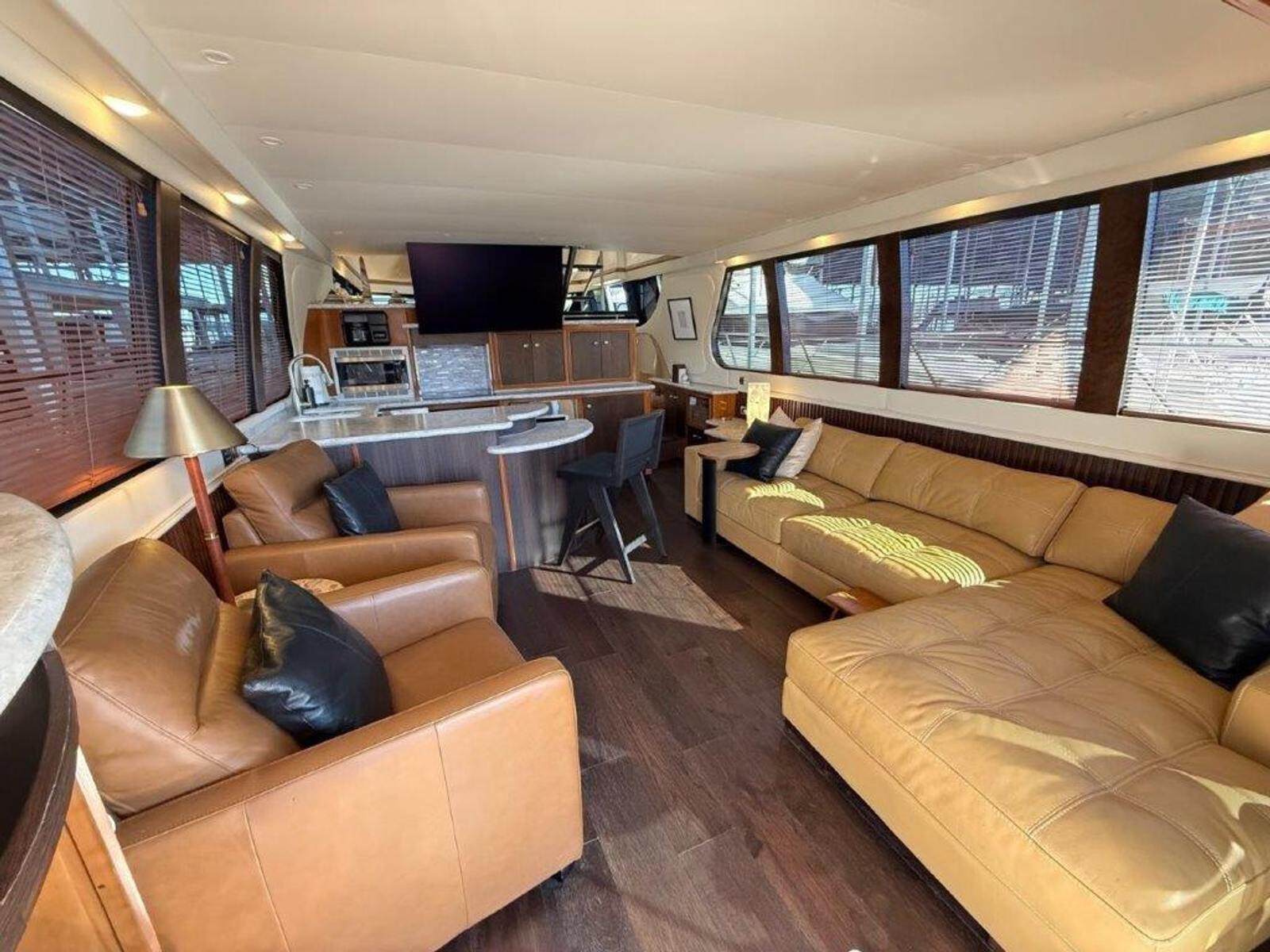 Below deck, the yacht features a three-stateroom layout, generous pilothouse seating, and a full-beam master suite, making her ideal for extended cruising or luxury liveaboard use. Her previous owner brought her down from Tennessee, and she currently resides under cover on Lake Lanier, preserving her freshwater condition.