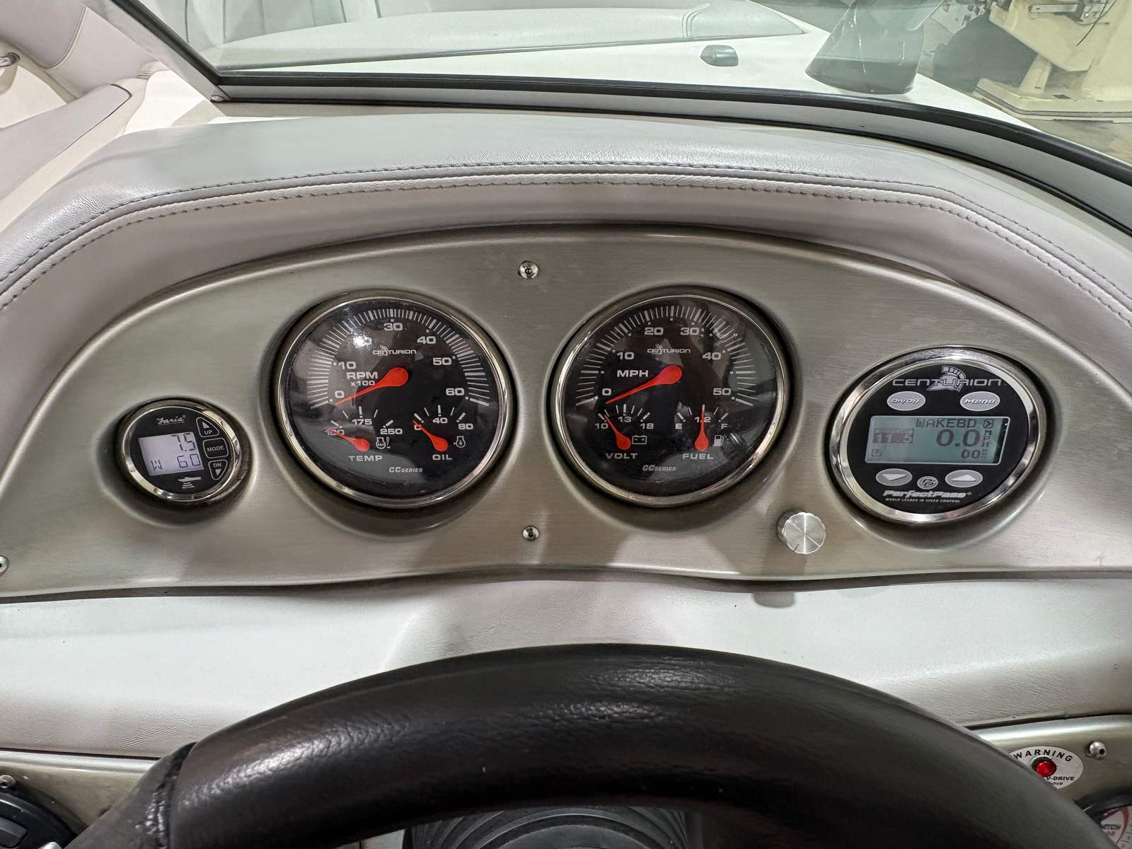 The 2008 Centurion Enzo SV230 shines in a variety of scenarios. It’s the ultimate companion for family outings, offering plenty of space and comfort for everyone on board. Wakeboarders and skiers will appreciate the customizable wakes and consistent speed control, making it easy to hone their skills and push their limits. The boat’s social-friendly layout and entertainment features make it perfect for hosting friends, celebrating special occasions, or simply relaxing on the water.For those who love fishing, the spacious deck and ample storage provide a versatile platform for casting lines and enjoying the tranquility of nature. Luxury getaways are elevated by the boat’s stylish design and premium features, ensuring every moment is memorable. Whether you’re seeking adrenaline-pumping action or peaceful relaxation, the Centurion Enzo SV230 adapts to your needs and delivers an exceptional boating experience.