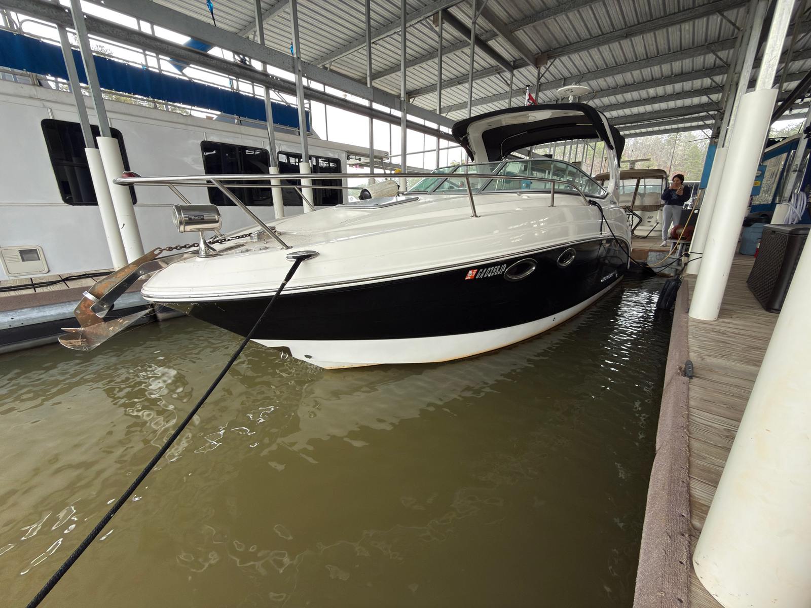 ✅ Volvo Penta 5.7L V8 320HP — 278 hours ✅ Generator onboard ✅ Air conditioning ✅ Full camper enclosure ✅ Just serviced — nothing left to do ✅ Trailer included ✅ Black hull — sharp and understated