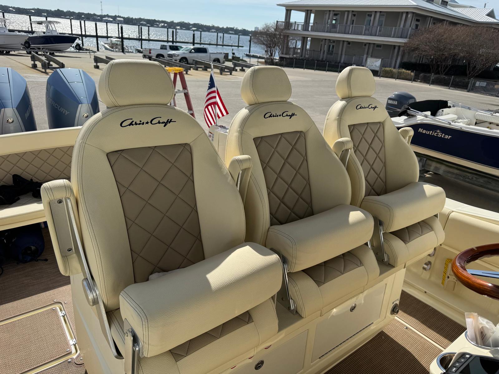 The 2023 Chris-Craft Catalina 34 is thoughtfully designed to maximize both utility and luxury. Its center console layout provides 360-degree access around the boat, making it ideal for fishing, entertaining, and enjoying panoramic views. The spacious deck offers ample room for guests to relax, while the ergonomic helm station ensures that the captain is always in command with intuitive controls and clear sightlines. The Catalina 34’s premium materials, elegant finishes, and signature Chris-Craft details create an inviting atmosphere that stands out in any marina.This center console boat for sale is built for versatility, with features that cater to a wide range of activities. The generous beam enhances stability and provides plenty of space for seating, storage, and movement. The well-appointed console offers protection from the elements and houses advanced navigation and control systems, ensuring a safe and enjoyable journey. Every inch of the Catalina 34 is crafted with the boater’s comfort and convenience in mind, making it a true pleasure to own and operate.