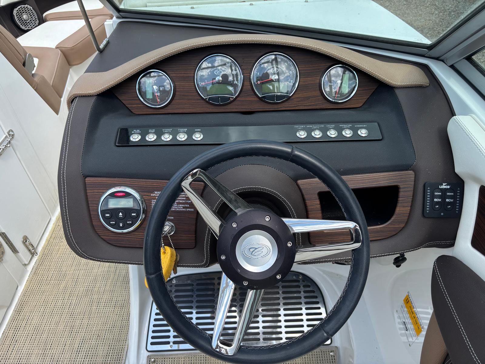 Powering the 2015 Cobalt 24 SD is a single engine boasting an impressive 300 horsepower. With only 21 engine hours, this Bowrider is practically new, offering reliable and efficient performance for a wide range of activities. The robust engine ensures smooth acceleration, responsive handling, and the power needed for water sports, cruising, or simply enjoying a day on the lake. Whether you are navigating calm waters or tackling choppier conditions, the Cobalt 24 SD delivers a confident and exhilarating ride every time.