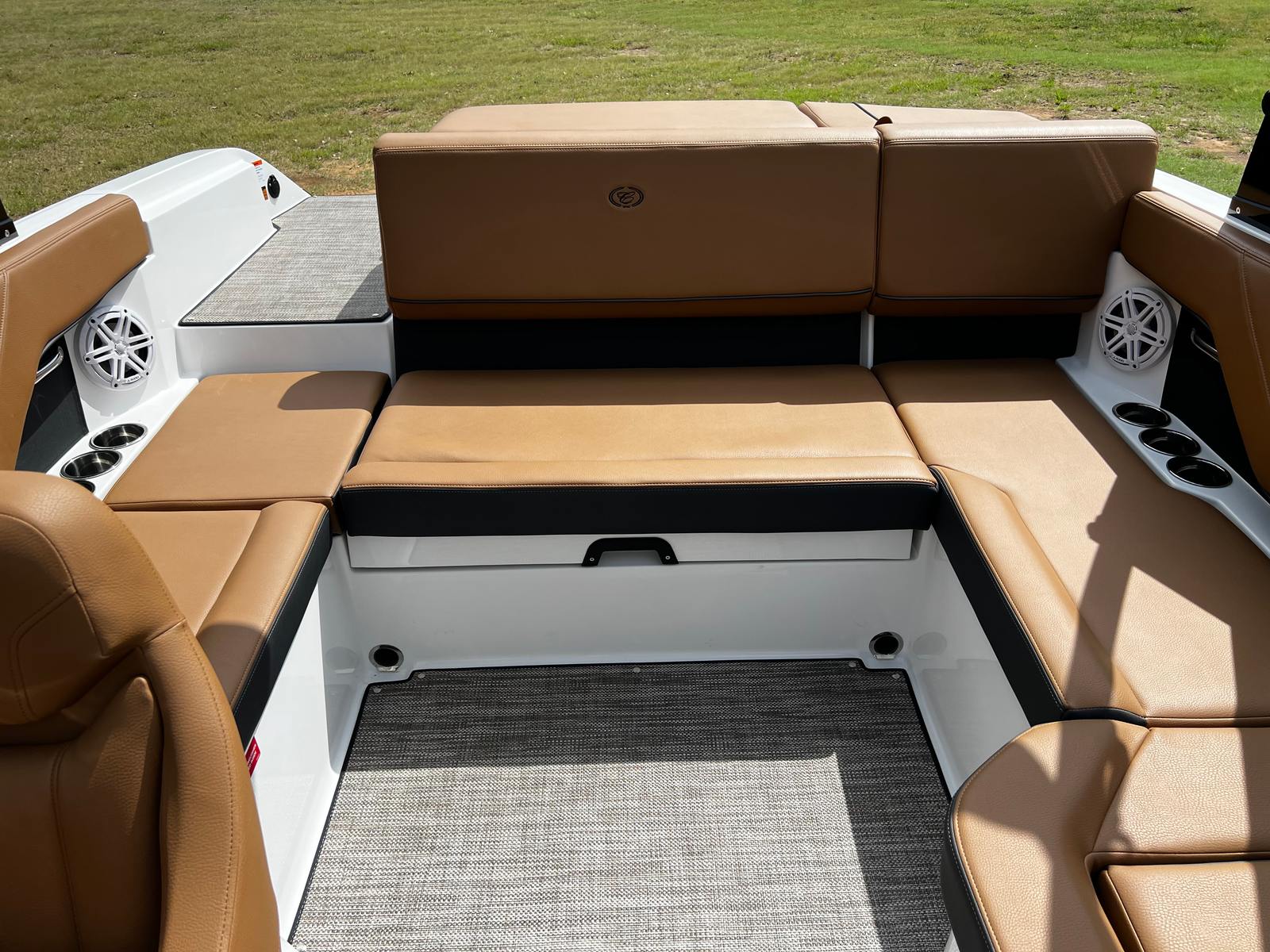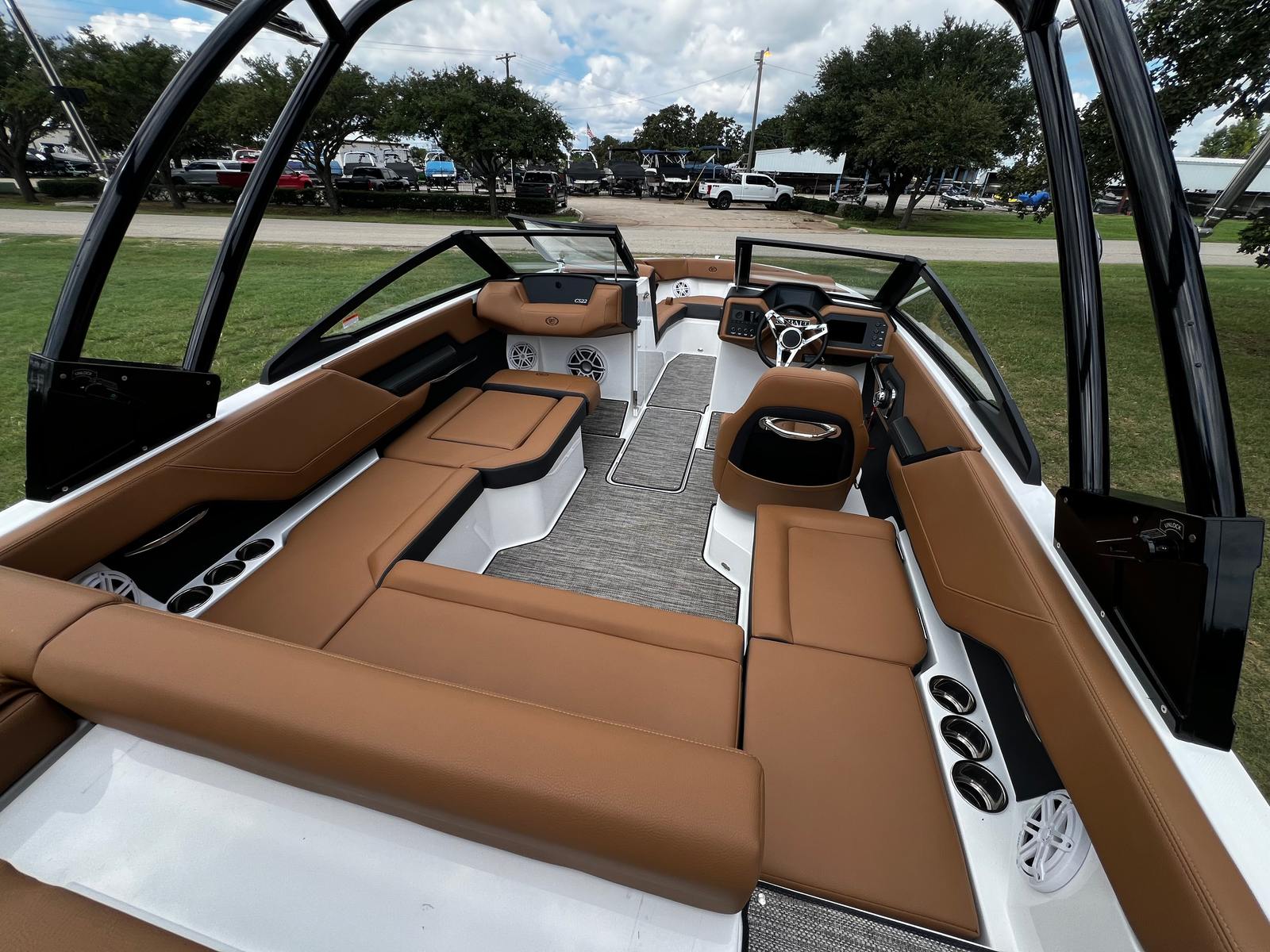 The Cobalt CS22 Bowrider is packed with premium features designed to enhance your boating experience. The exterior boasts a striking Hull Side in White, complemented by an Accent Stripe in Graphite Gray and a Hull Bottom in Rich Ebony, creating a sophisticated and modern look. The Cobalt Letters in Black Satin add a touch of elegance and brand distinction.Step inside to discover the luxurious Caramel/Carbon Interior, offering both comfort and style. The floor is covered with Seagrass in Raw Umber, providing a soft, durable surface that’s perfect for barefoot relaxation. The manual adjustable seat (standard) ensures personalized comfort for the captain, while the Battery Switch with ACR-Dual system offers added convenience and safety.For entertainment, the Premium Sound system with Transom Remote (Fusion) delivers crystal-clear audio, allowing you to set the perfect mood for any outing. Whether you’re hosting a party or enjoying a quiet sunset cruise, the sound system ensures your favorite tunes are always within reach.