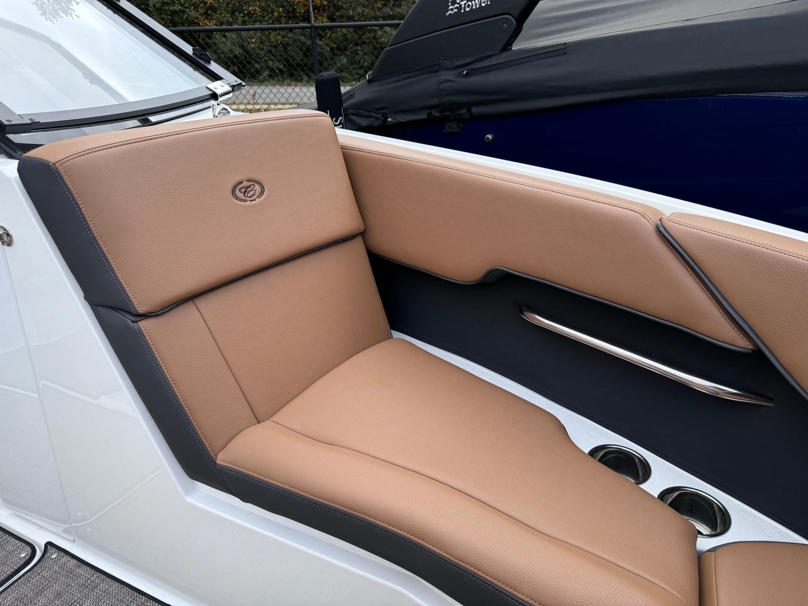 The 2025 Cobalt CS23 is a new 23.42-foot bowrider that showcases the brand’s commitment to quality and innovation. This model is meticulously crafted to deliver a premium boating experience, whether you are cruising with family, entertaining friends, or enjoying solo escapes. The CS23’s contemporary design is complemented by a rich Ebony hull bottom and White Satin accents, making it a true head-turner at any marina or lake. The Carbon and Caramel interior creates a warm, inviting atmosphere, while the Cobalt letters add a touch of signature elegance.