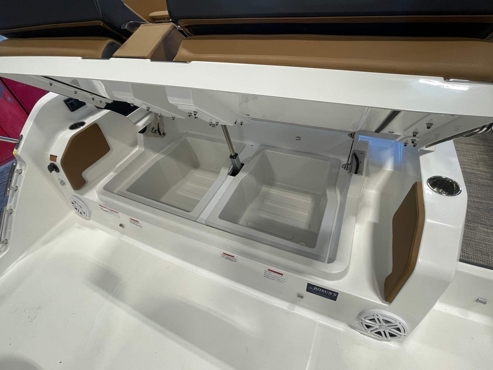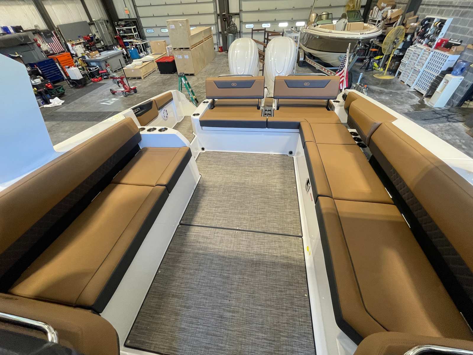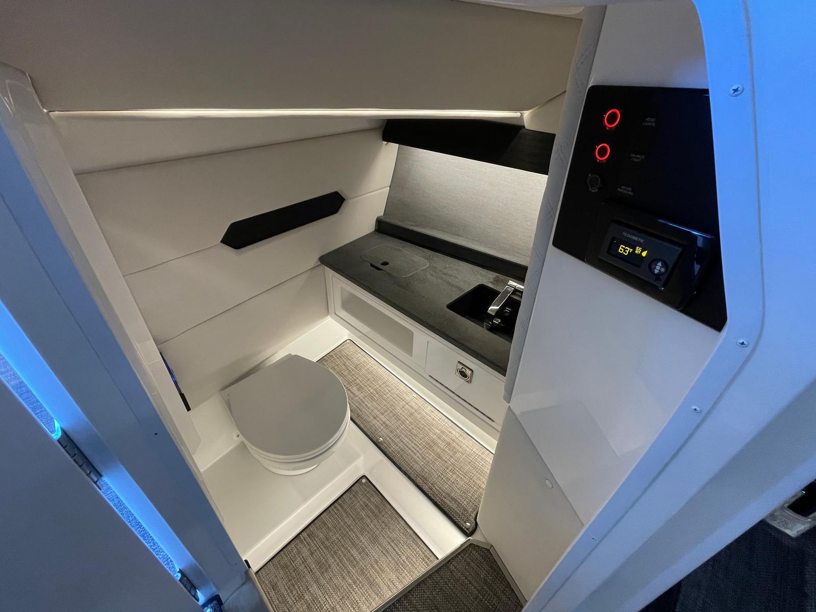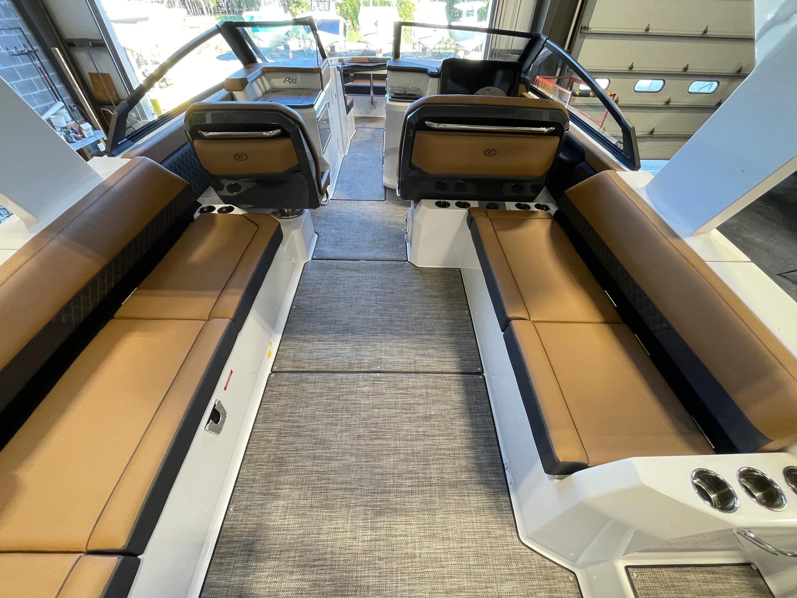The R31 OB is designed with the modern boater in mind, offering practical features that enhance every aspect of ownership. The Bazttery Maintainer and Charger simplify maintenance, ensuring your boat is always ready for action. The Finder Clips with Line make organizing and securing your gear effortless, while the spacious cockpit allows for easy movement and storage. Docking is straightforward thanks to the responsive twin engines, and the air conditioner with heat extends your boating season, making this cruiser boat for sale a versatile choice for year-round enjoyment.
