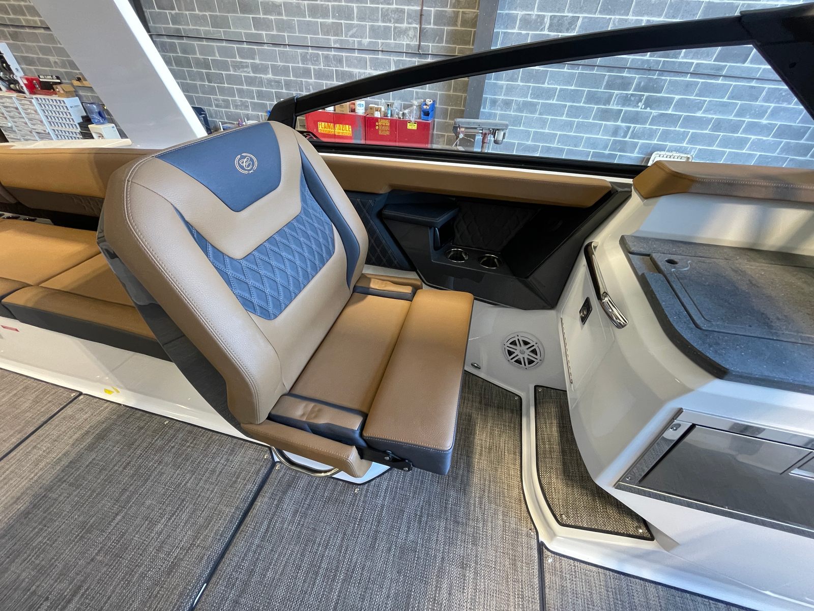 Step aboard the Cobalt R31 OB and discover a world of comfort and convenience. The cockpit features a sophisticated Carmel and Carbon color scheme, accented by Cobalt Lettering in White Satin for a refined touch. The Arch with Hardtop in White not only enhances the boat’s profile but also provides shade and protection from the elements, allowing you to enjoy your time on the water in any weather. The air conditioner with heat ensures a comfortable environment, whether you’re cruising under the summer sun or enjoying cooler evenings.Practicality meets style with the Bazttery Maintainer and Charger, keeping your systems powered and ready for every adventure. The Dinette Table in White offers a perfect spot for meals, games, or socializing, while the Finder Clips with Line (6) add convenience for securing gear and accessories. Show your pride with the Flagpole and Flag, a classic touch that adds character to your vessel.