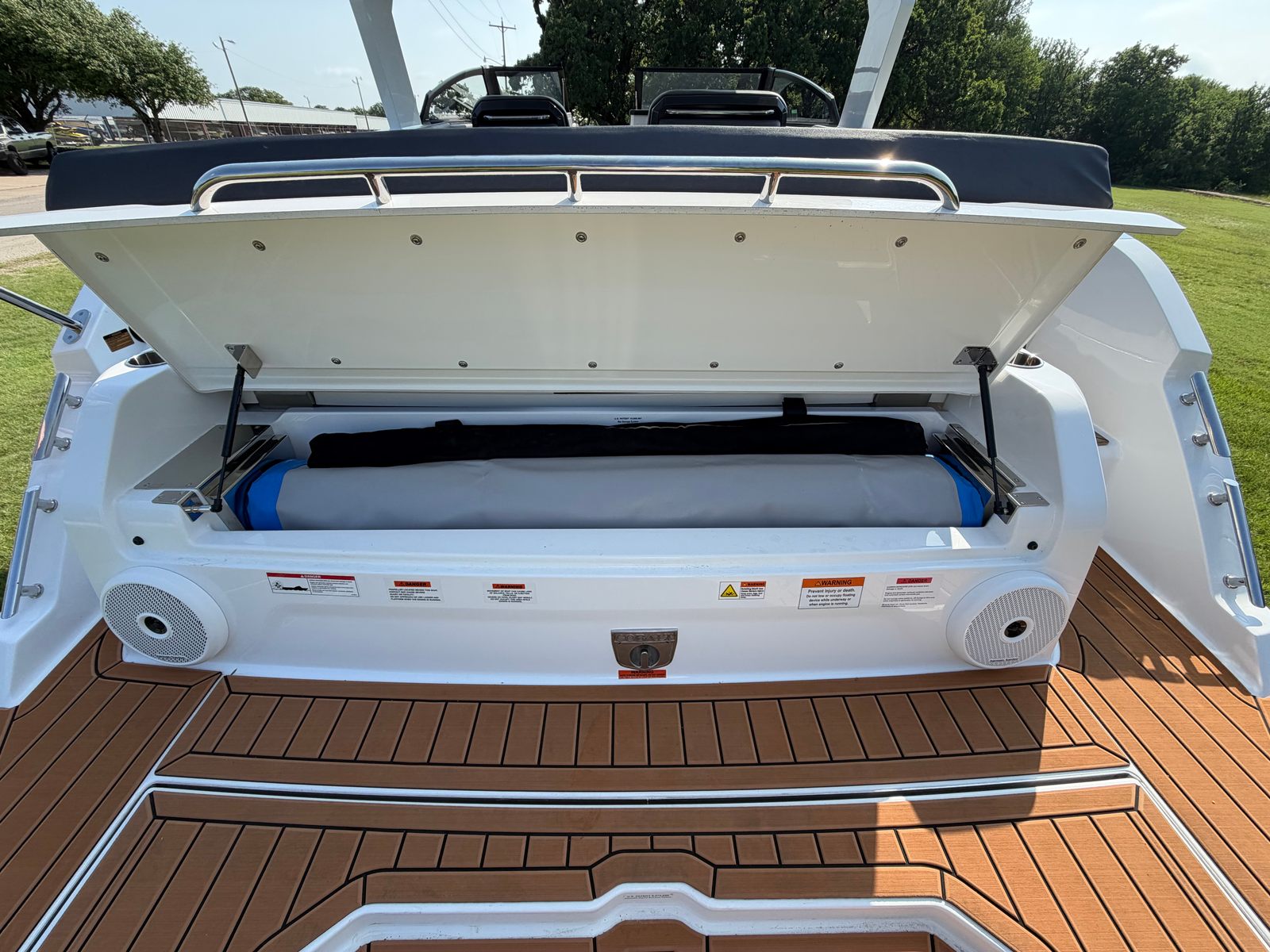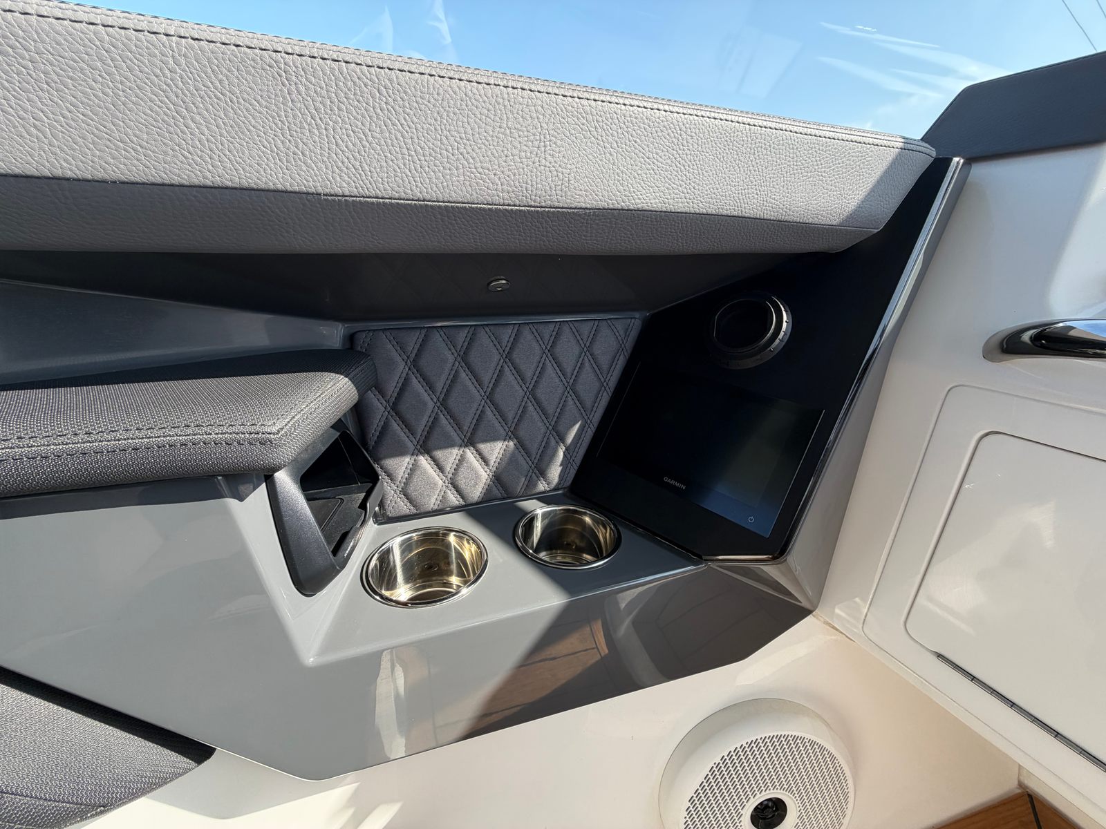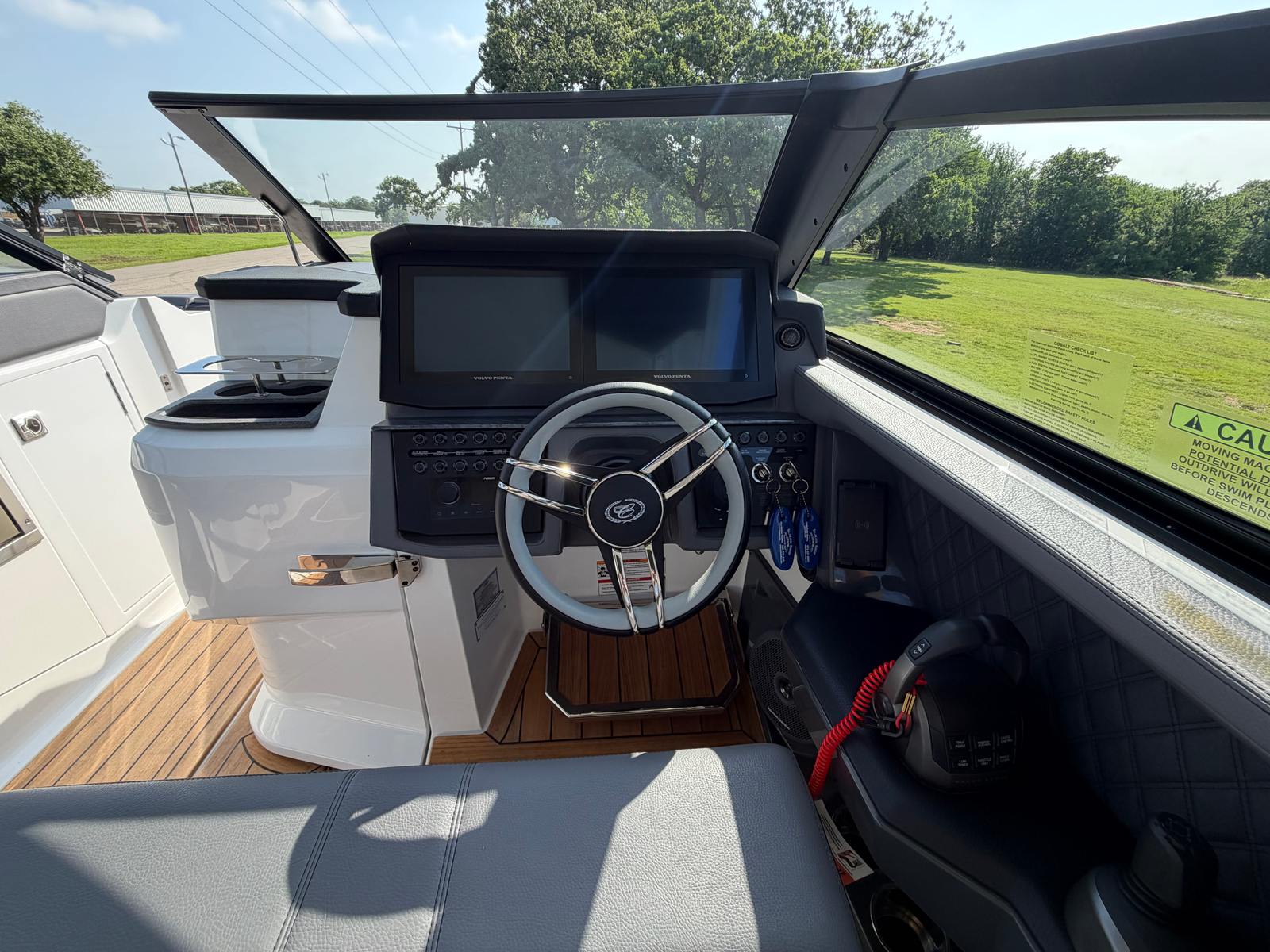 The Cobalt R31 is designed with practicality in mind, offering features that make ownership easy and enjoyable. The battery maintainer and charger ensure your boat is always ready for action, minimizing downtime and maintenance hassles. The air compressor with holder provides quick access for inflating water toys, paddleboards, or other gear, adding convenience for active families and adventurers.Docking is simplified with the rear-facing camera, giving you clear visibility and control in tight spaces. The spacious layout and thoughtful storage solutions make it easy to stow gear, supplies, and personal items, keeping the deck clutter-free and organized. The climate control system at the helm and head ensures comfort during long cruises or overnight stays, while the electric awning offers instant shade and protection.