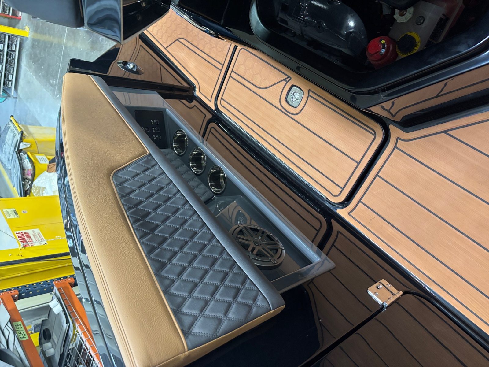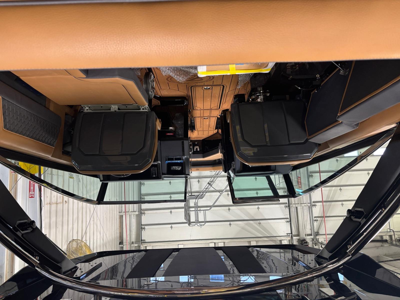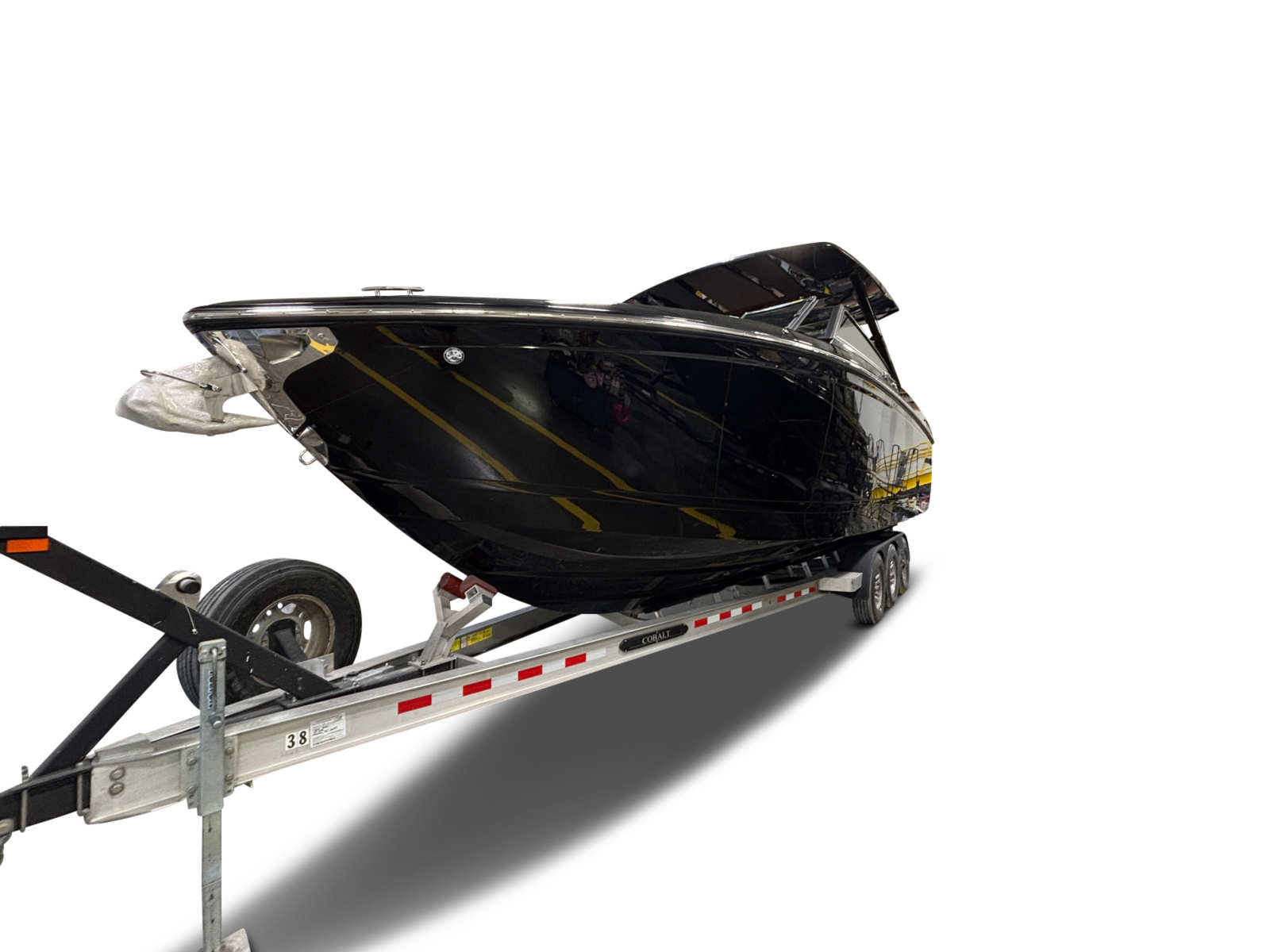 The Cobalt R33 Surf is packed with premium features that elevate your boating experience. The arch with hard top provides both style and functionality, offering shade and protection from the elements while maintaining an open and airy feel. The electric awning in sleek black extends effortlessly, creating a comfortable space for relaxation or entertaining guests. The aft walk-thru gate and boarding door make it easy to access the water or dock, enhancing safety and convenience for everyone on board.Inside, the cockpit showcases a luxurious interior finished in Caramel, Carbon, and Ebony, creating a sophisticated and inviting atmosphere. The Cobalt letters with flag emblem in black satin add a touch of elegance and brand distinction. For those cooler days on the water, the cockpit heater ensures that everyone stays warm and comfortable, extending your boating season well into the cooler months.Additional features such as the battery maintainer/charger (110V) keep your boat ready for action, while the board rack covers and PTM provide practical solutions for storing and protecting your gear. Every detail of the R33 Surf is designed with the owner’s comfort and convenience in mind.