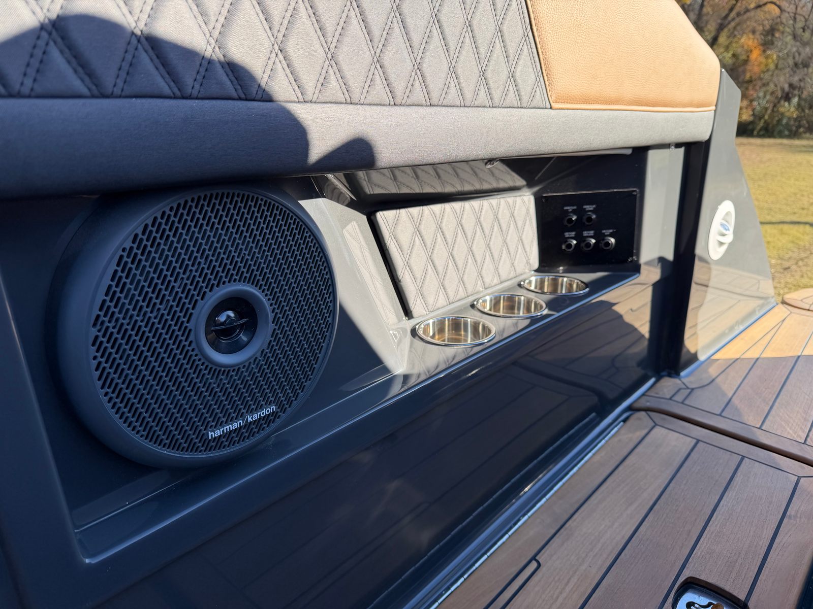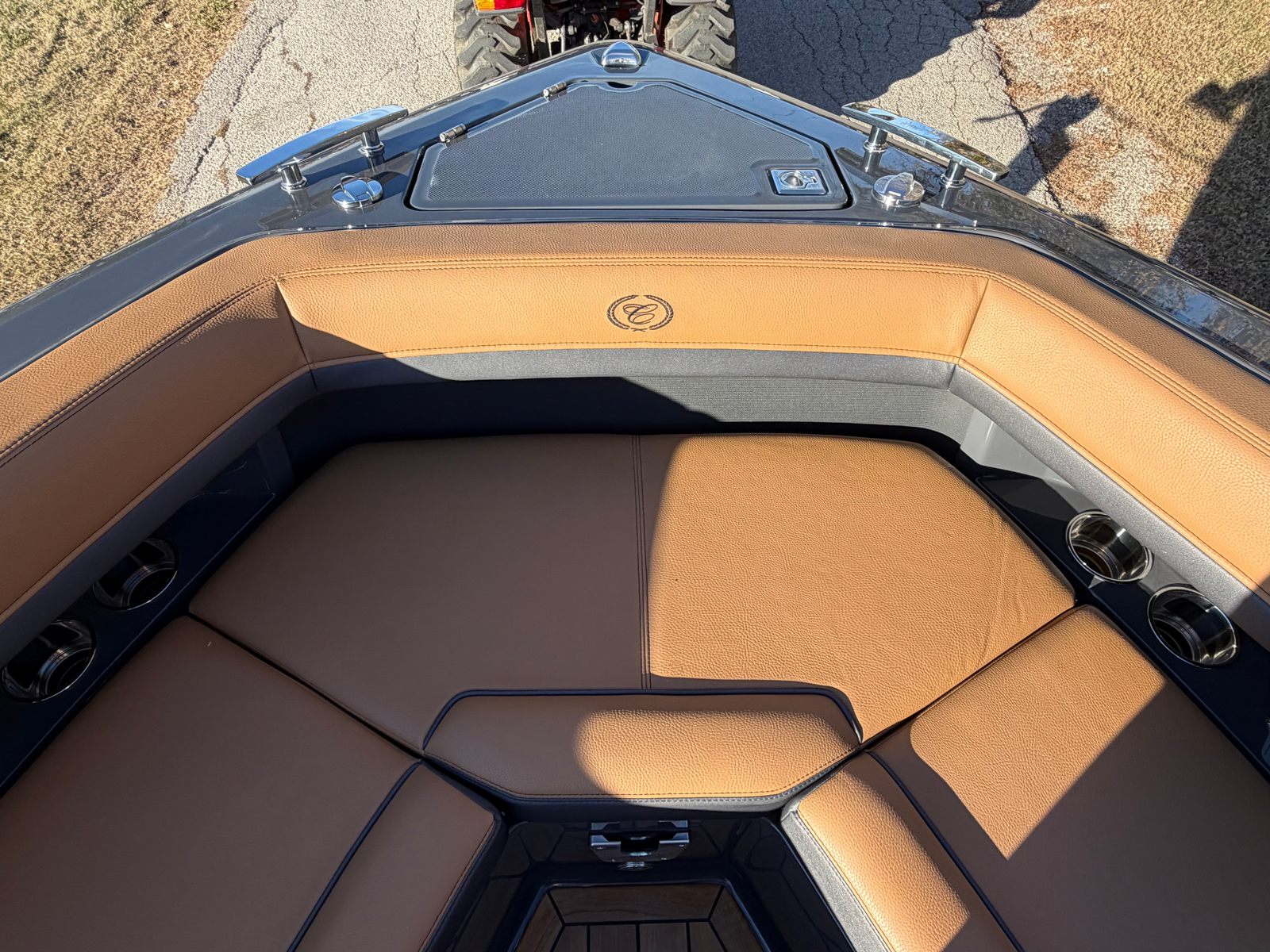 The 2026 Cobalt R33 Surf is packed with premium features designed to enhance every aspect of your boating experience. The striking Accent Stripe and Rich Ebony exterior create a bold visual statement, while the Air Compressor with Holder adds convenience for inflating water toys and equipment. The Arch with Hard Top, finished in Black and complemented by a Black Electric Awning, provides stylish protection from the sun and elements, ensuring comfort throughout your journey. The Battery Maintainer/Charger keeps your boat’s power systems in optimal condition, while the Boarding Door offers easy access for guests of all ages.Inside, the Caramel/Carbon/Ebony interior exudes luxury, with plush seating and elegant finishes that invite relaxation. The Bow Benter Cushion Insert and Bow Shade Sail offer additional comfort and shade, perfect for long days on the water. Signature Cobalt Letters with Flag Emblem showcase the brand’s heritage, while the Dinette Table with Bow and Cockpit Receptacles creates versatile dining and social spaces for entertaining friends and family.