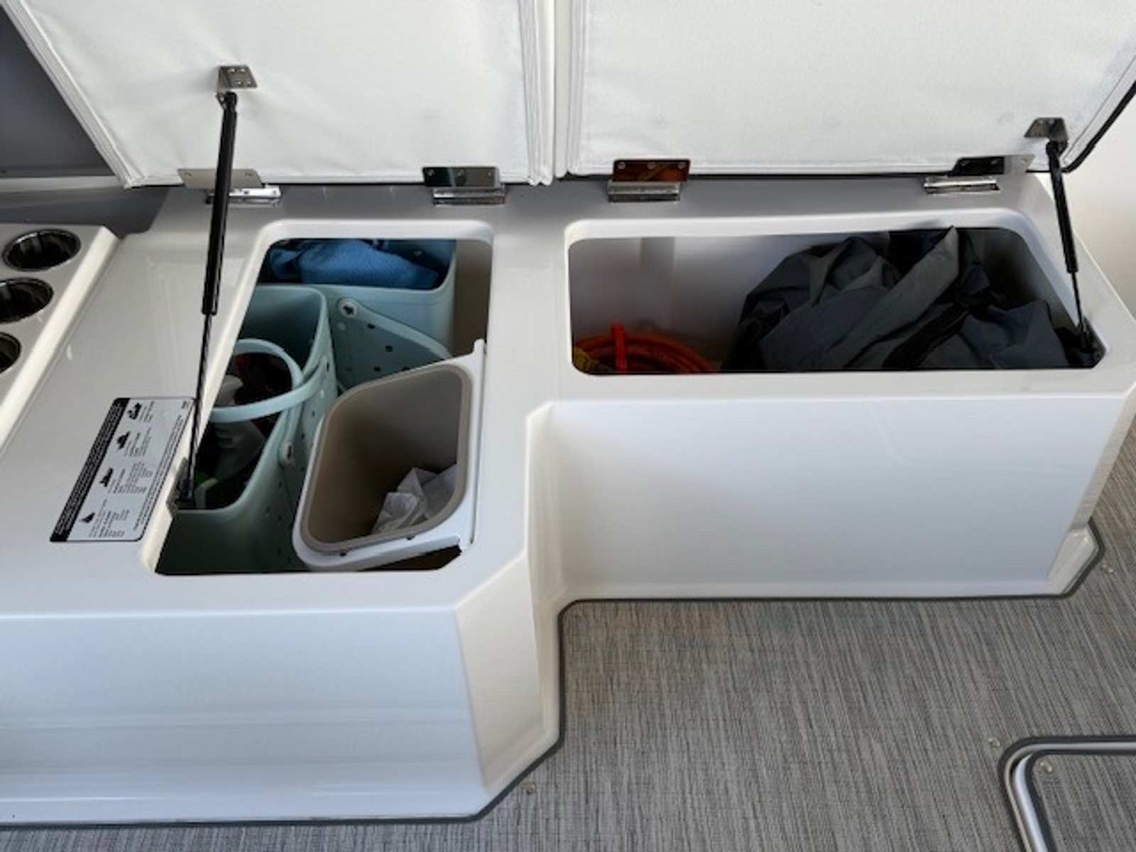 Power comes from twin 380 HP big-block sterndrives with just 50 hours, providing strong acceleration, smooth cruising, and confident control. The helm is equipped with a multi-screen Garmin glass cockpit, joystick docking, and trim tabs with Autoglide, making this boat easy to operate whether you’re running at speed or easing into the dock.