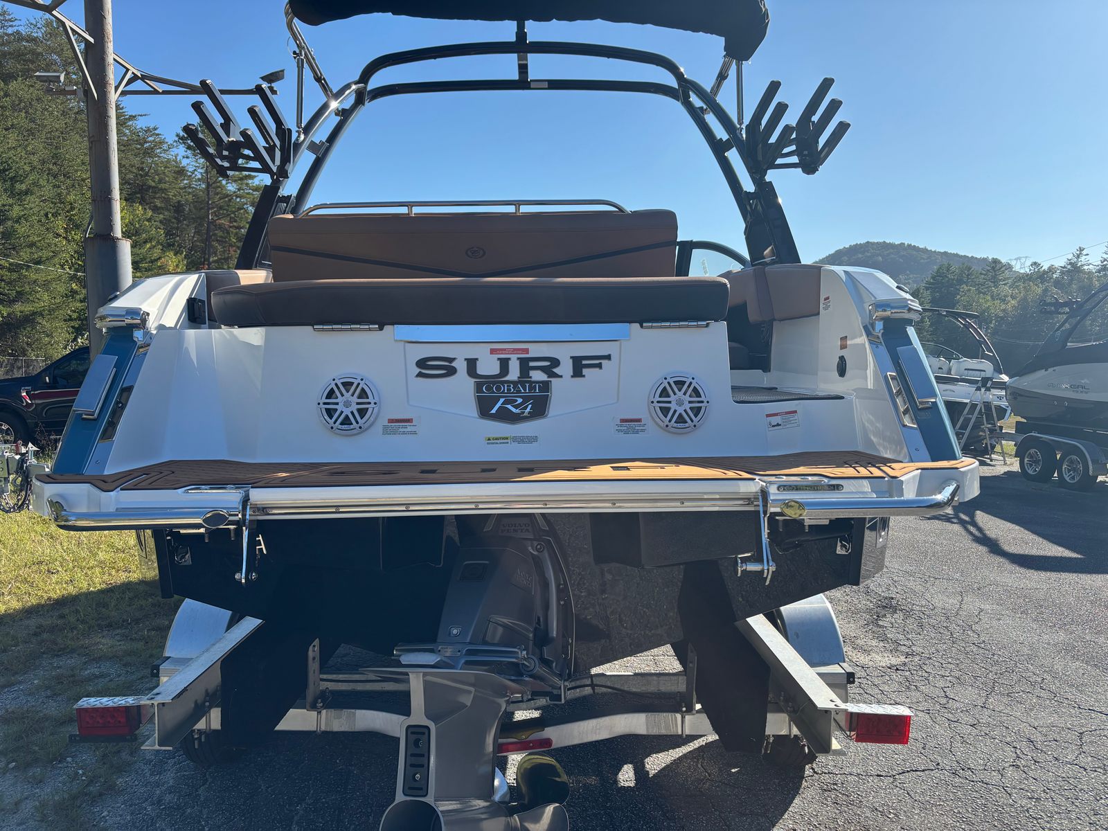 Owning the Cobalt R4 Surf means embracing a lifestyle of fun, relaxation, and adventure. This Bowrider is designed to maximize enjoyment on the water, whether you’re hosting a lively gathering, embarking on a family outing, or indulging in your favorite water sports. The spacious layout and comfortable seating ensure everyone has room to unwind, while the advanced surf technology opens up endless possibilities for wake surfing and other activities.The premium sound system transforms every trip into a party, allowing you to set the perfect mood with your favorite tunes. The swim platform extension makes it easy to jump in for a swim or relax by the water’s edge, while the AFT facing rumble seat offers a cozy spot to soak up the sun and enjoy the scenery. With its stylish design and thoughtful features, the Cobalt R4 Surf is sure to impress guests and create lasting memories.