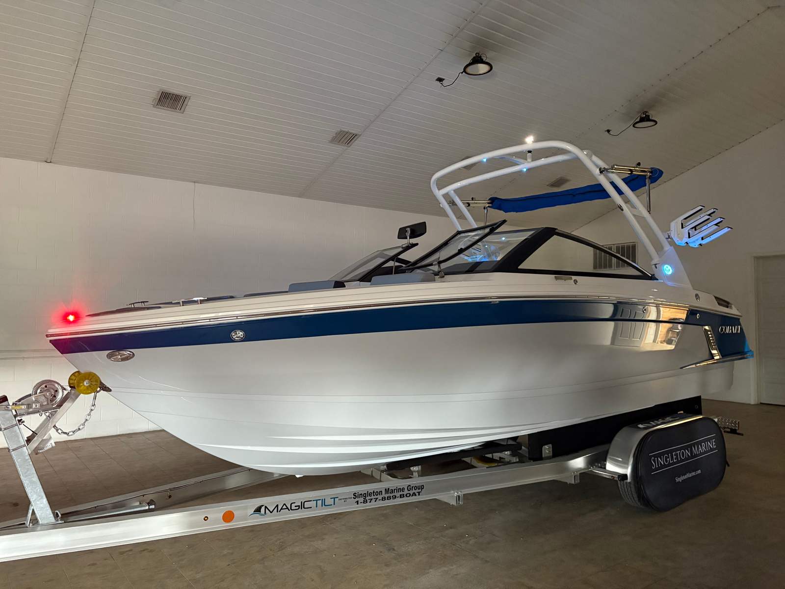 The 2026 Cobalt R4 Surf is a 24.25-foot bowrider that perfectly balances spaciousness and agility. As a brand-new model, it showcases Cobalt’s renowned craftsmanship and attention to detail, making it a standout choice for those seeking a high-quality bowrider boat for sale. The R4 Surf’s contemporary lines and striking color palette, featuring a Frost Gray hull bottom and an interior in Frost, Slate, and Pacific Blue, create a visually captivating presence on the water. Whether you are cruising with friends or enjoying a day with family, this Cobalt boat for sale offers ample room and comfort for everyone on board.