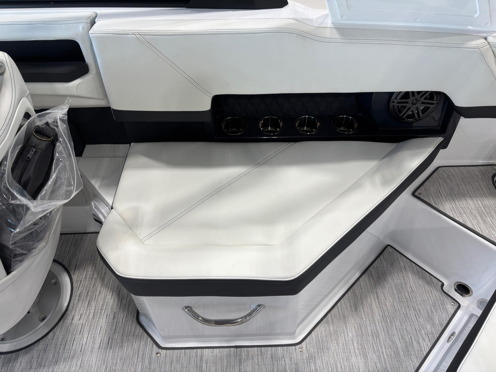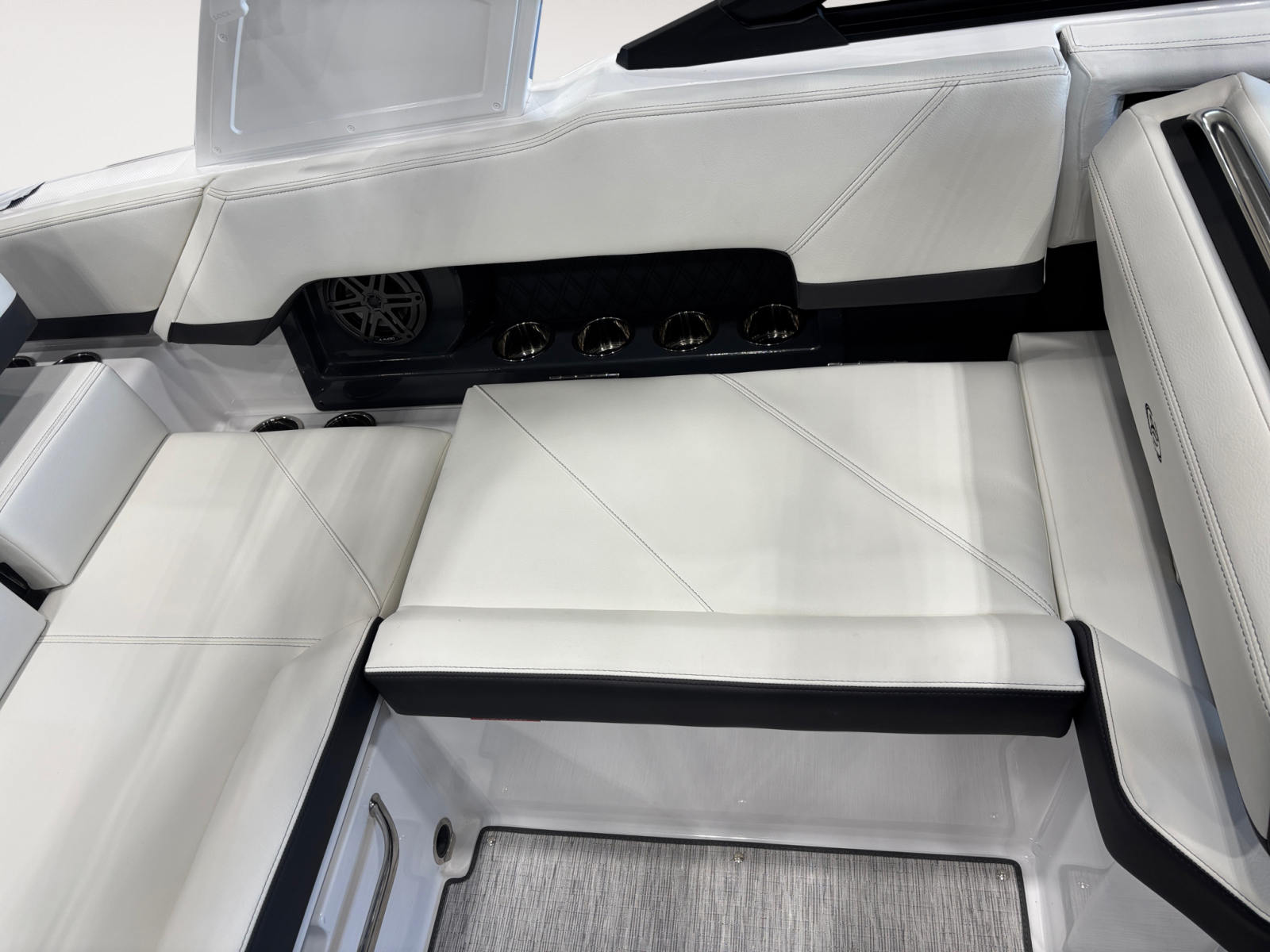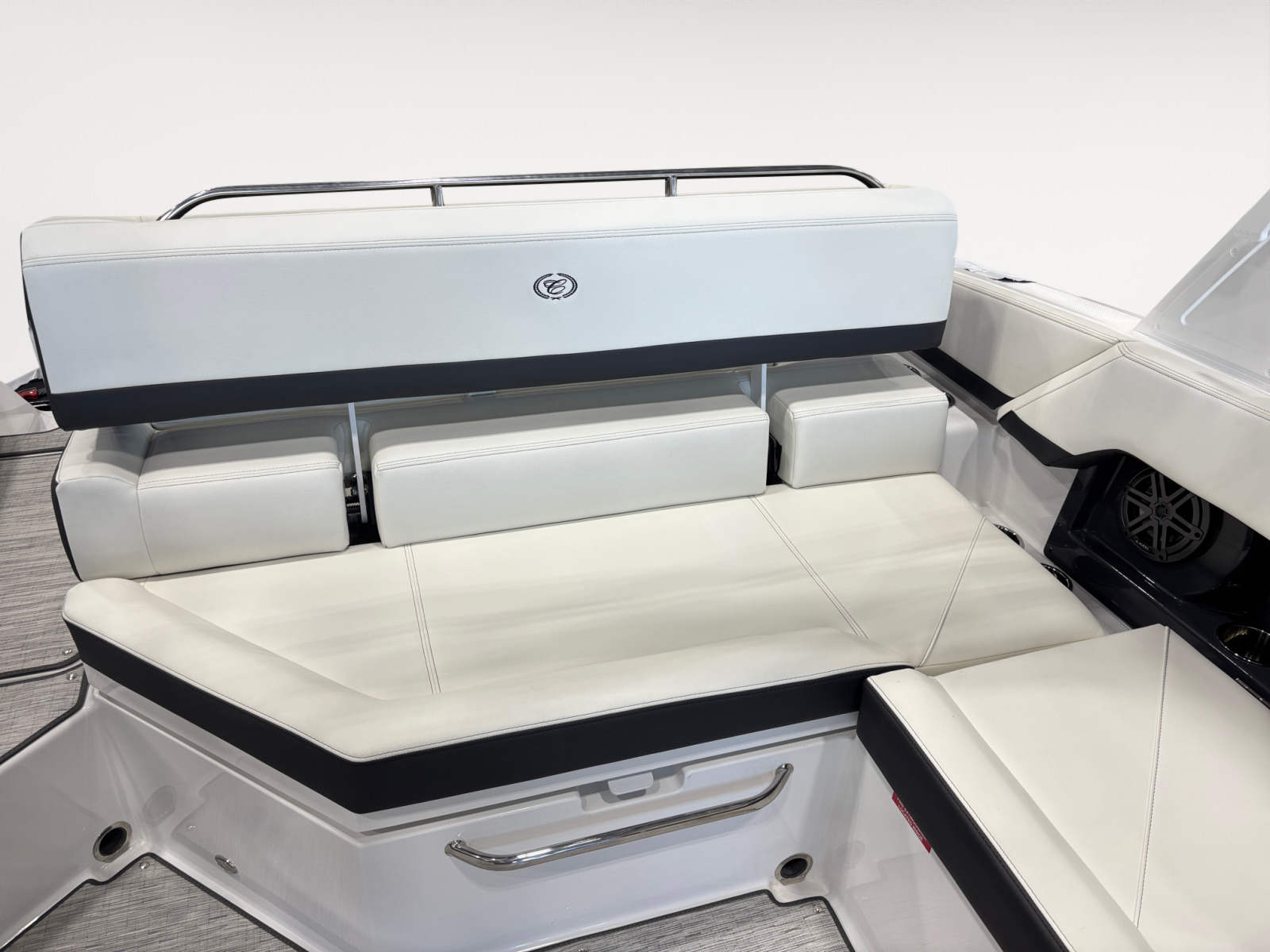 The 2026 Cobalt R4 Bowrider is loaded with premium features that elevate your boating experience. The Aft Facing Rumble Seat offers a unique and comfortable spot to relax and take in the views, while the White (Folding) Arch adds a modern touch and provides support for the E2 With Ebony Bimini, offering shade and protection from the sun. The Bow Tonneau Cover and Cockpit Tonneau Cover, both in Ebony, ensure your boat stays protected when not in use, maintaining its pristine appearance.Distinctive Cobalt Letters in Black Satin add a touch of elegance, while the Fender Clips With Line (4) make securing your boat at the dock quick and convenient. The Flagpole With Flag is a stylish nod to tradition, and the Floor Covering in Seagrass, Silver Ash, provides a soft, luxurious feel underfoot, enhancing both comfort and aesthetics.