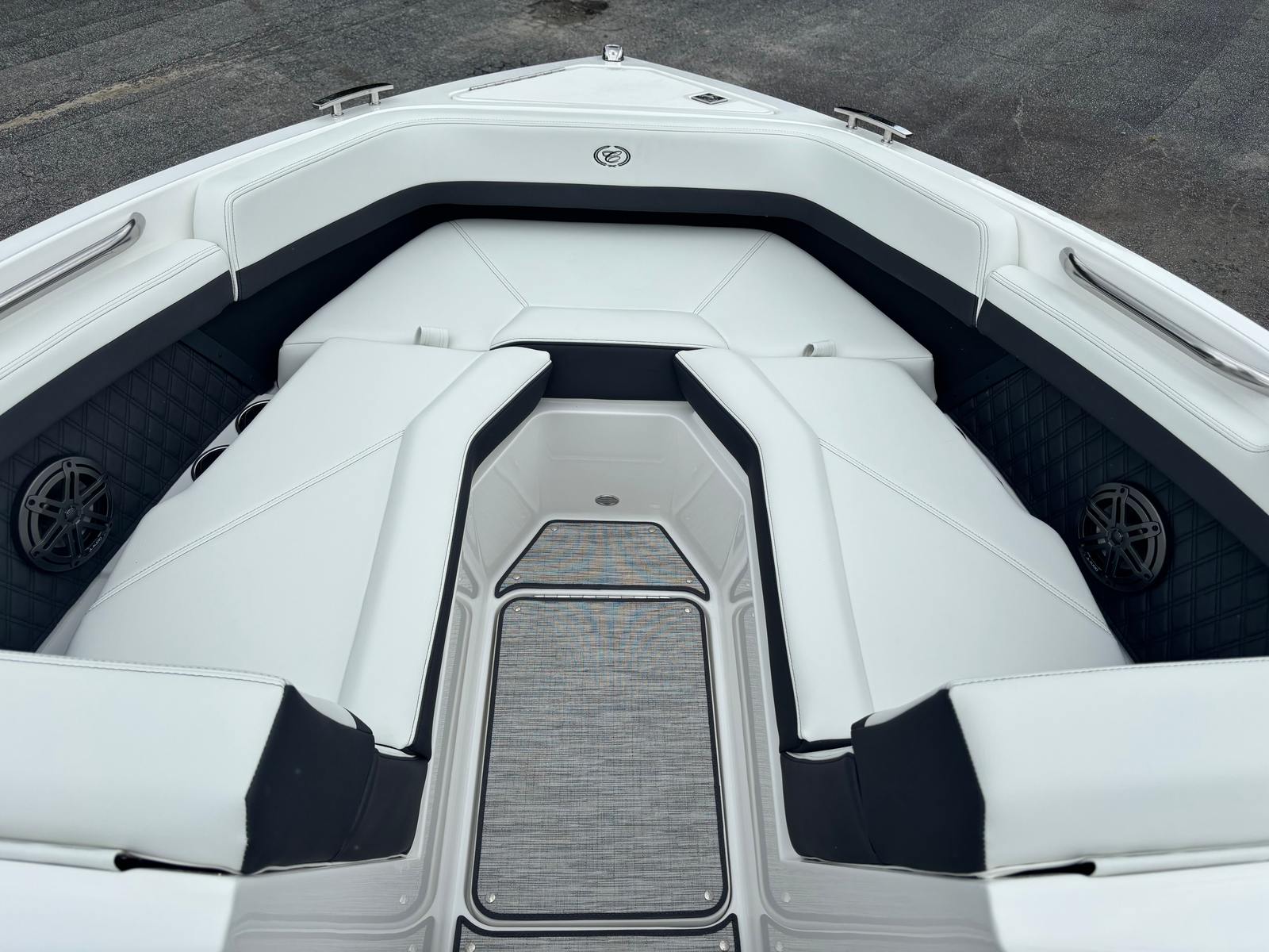 Owning the Cobalt R4 Bowrider means embracing a lifestyle of fun, relaxation, and adventure. The spacious layout is ideal for socializing, with plenty of seating for family and friends. The premium sound system creates the perfect atmosphere for parties or quiet cruises, while the swim platform and flip-down swim step invite you to dive into the water and enjoy every sunny day. The rumble seat offers a unique vantage point for soaking in the scenery, and the folding arch provides flexibility for different activities and weather conditions.This Cobalt boat for sale is designed with comfort and convenience in mind, making every outing enjoyable and stress-free. The thoughtful placement of features ensures you have everything you need at your fingertips, from charging your phone to securing your fenders. The Bayside Blue accents and black satin Cobalt letters reflect your personal style and appreciation for quality craftsmanship.