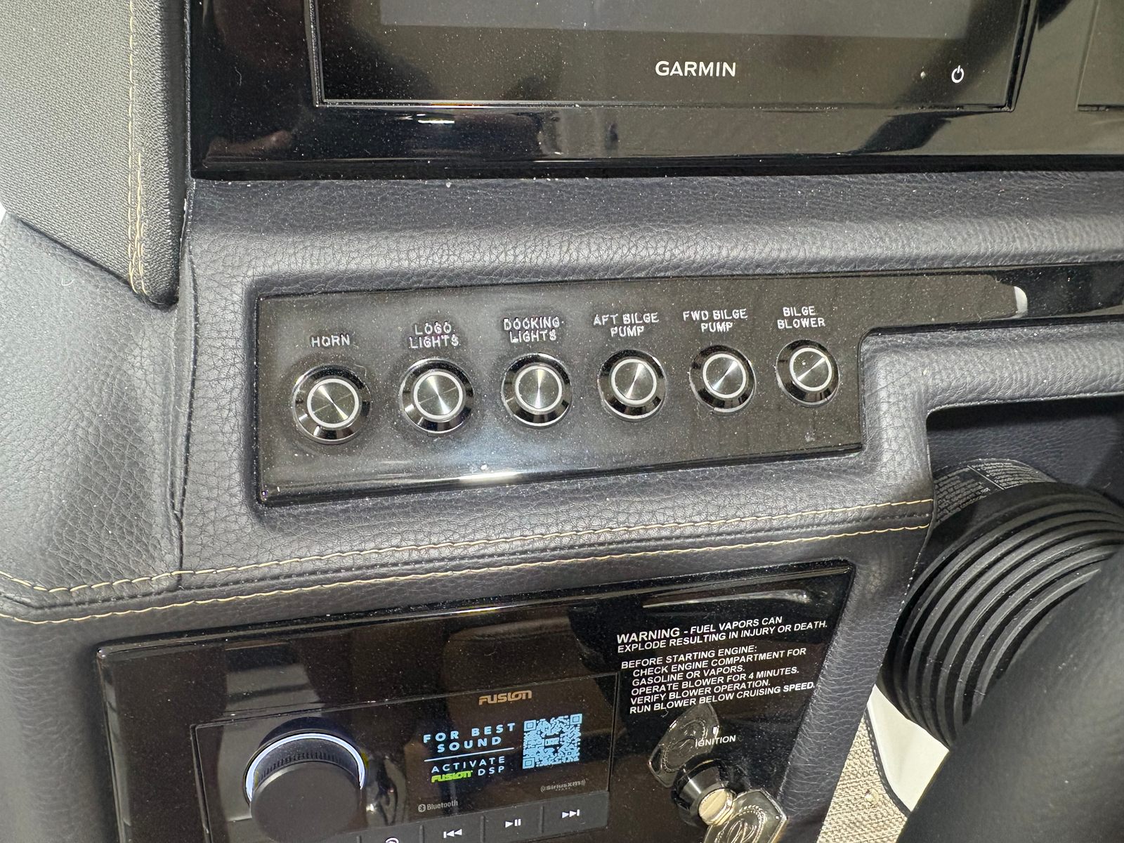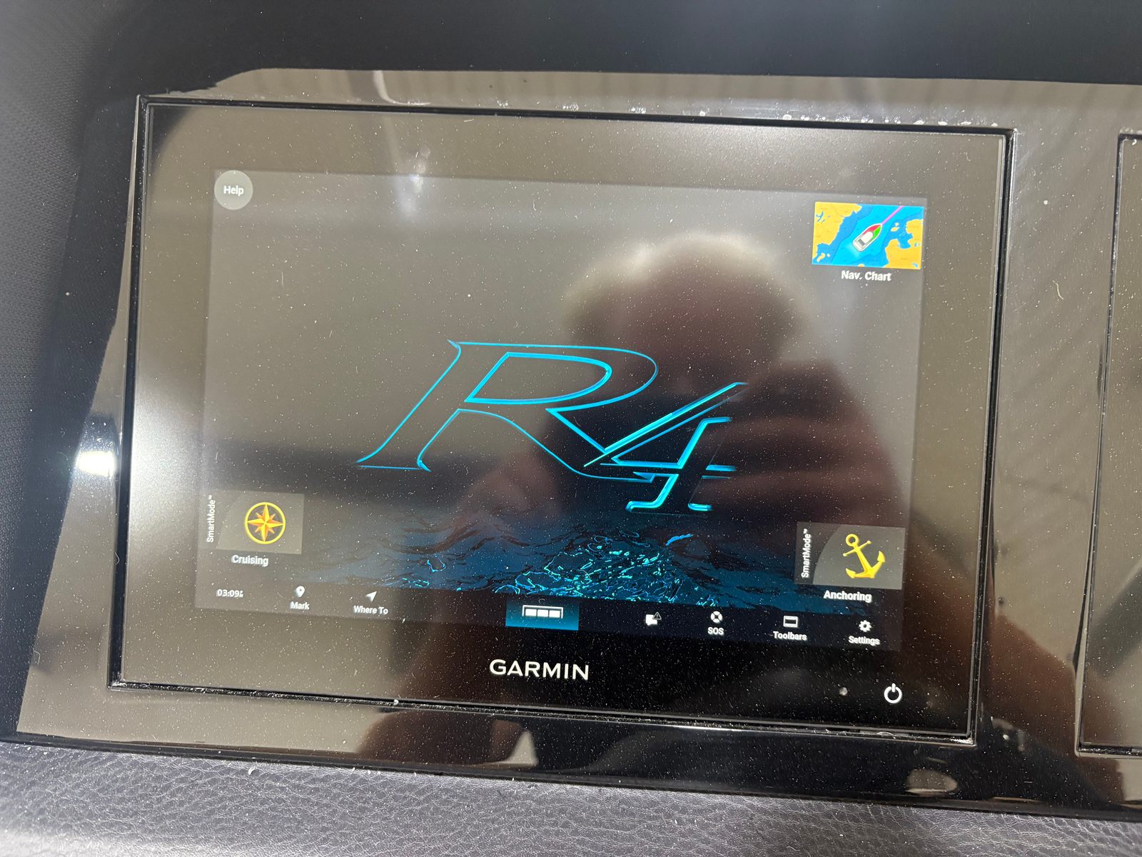 The Cobalt R4 is packed with special features designed to elevate your boating experience. The folding Arch, E2 - White with Captain/Navy Bimini, provides shade and style, while the aft-facing rumble seat offers a unique spot to relax and enjoy the view. The glass cockpit, equipped with dual Garmin 8610 displays, puts advanced navigation and system controls at your fingertips, ensuring you are always in command. Stainless steel docking lights enhance visibility during evening returns, and the four fender clips with lines make docking and securing your boat a breeze. The floor covering in Seagrass, Raw Umber, adds a touch of elegance and comfort underfoot, while the overall fit and finish reflect Cobalt’s commitment to quality and craftsmanship.